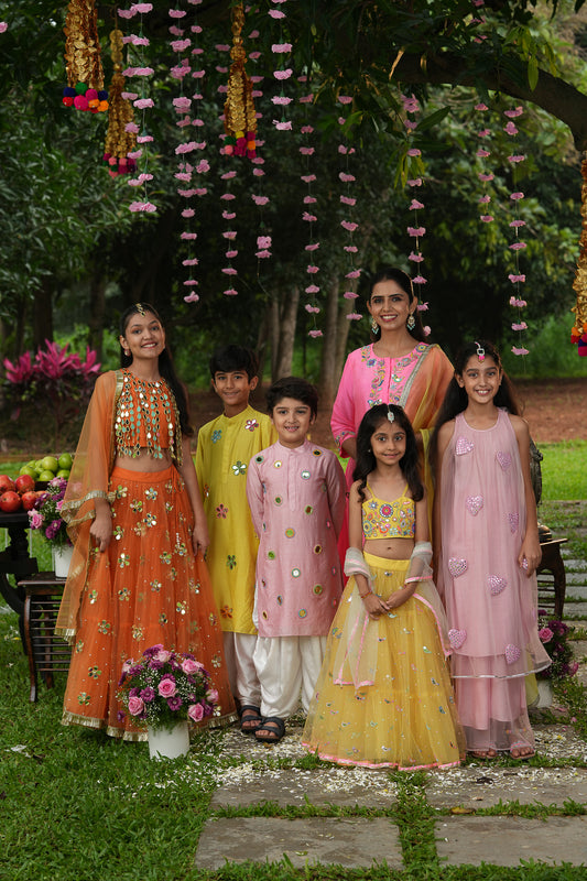 Parent's often say, ''It’s a one time wear'' or Kids Outgrow so fast, I will never be able to use it again''. At Panchhi we disagree and strive to make outfits last as long as possible and post that upcyle the same outfit to form a keepsake or upcycle to fit the child for a few more years.