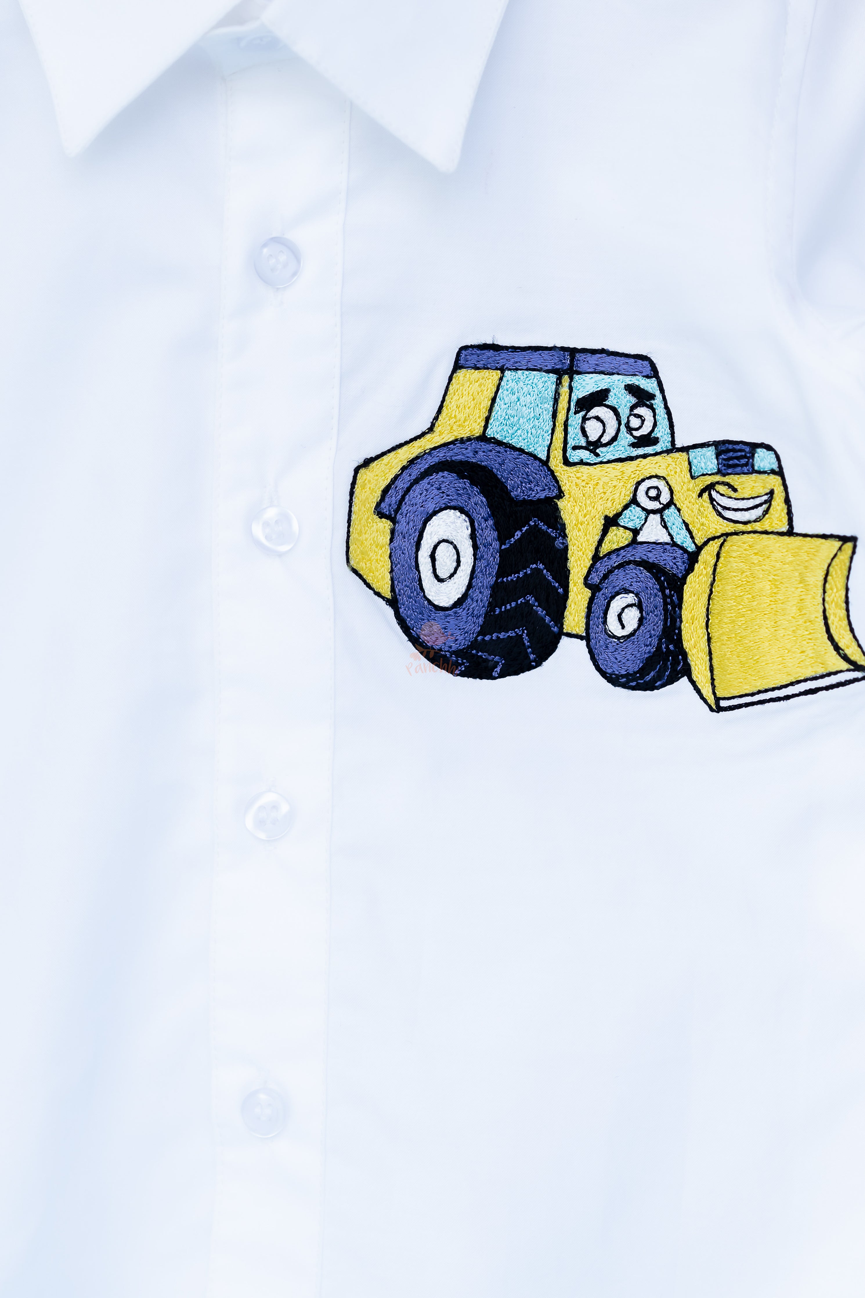 (Embroidered Unisex Shirt in Pure Egyptian Giza Cotton with Foldable Sleeves. Romper Style can be made for upto 6 months on request).