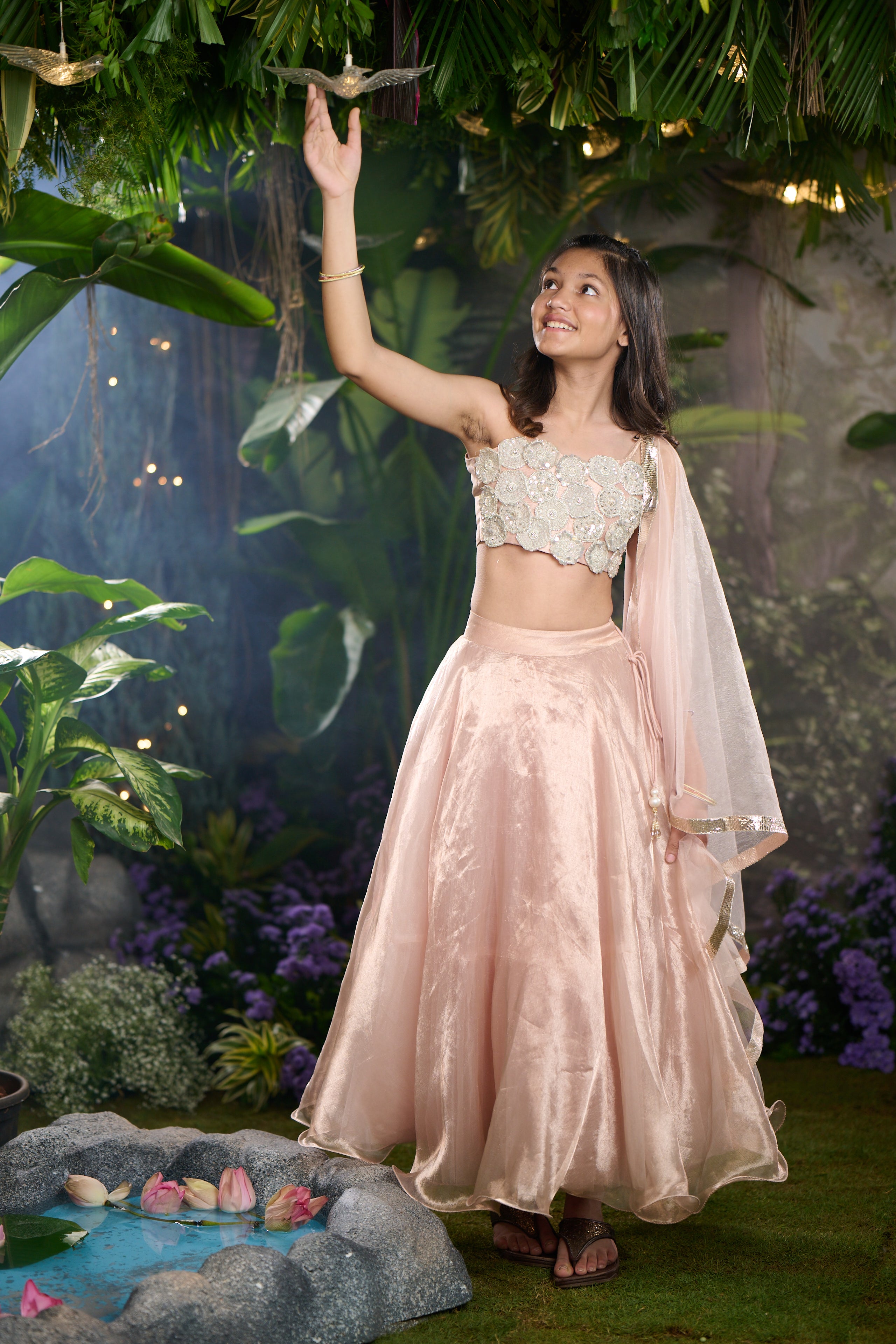 Like a sprinkle of magic, this tissue lehenga seems touched by the lightest brush of a fairy's wings.