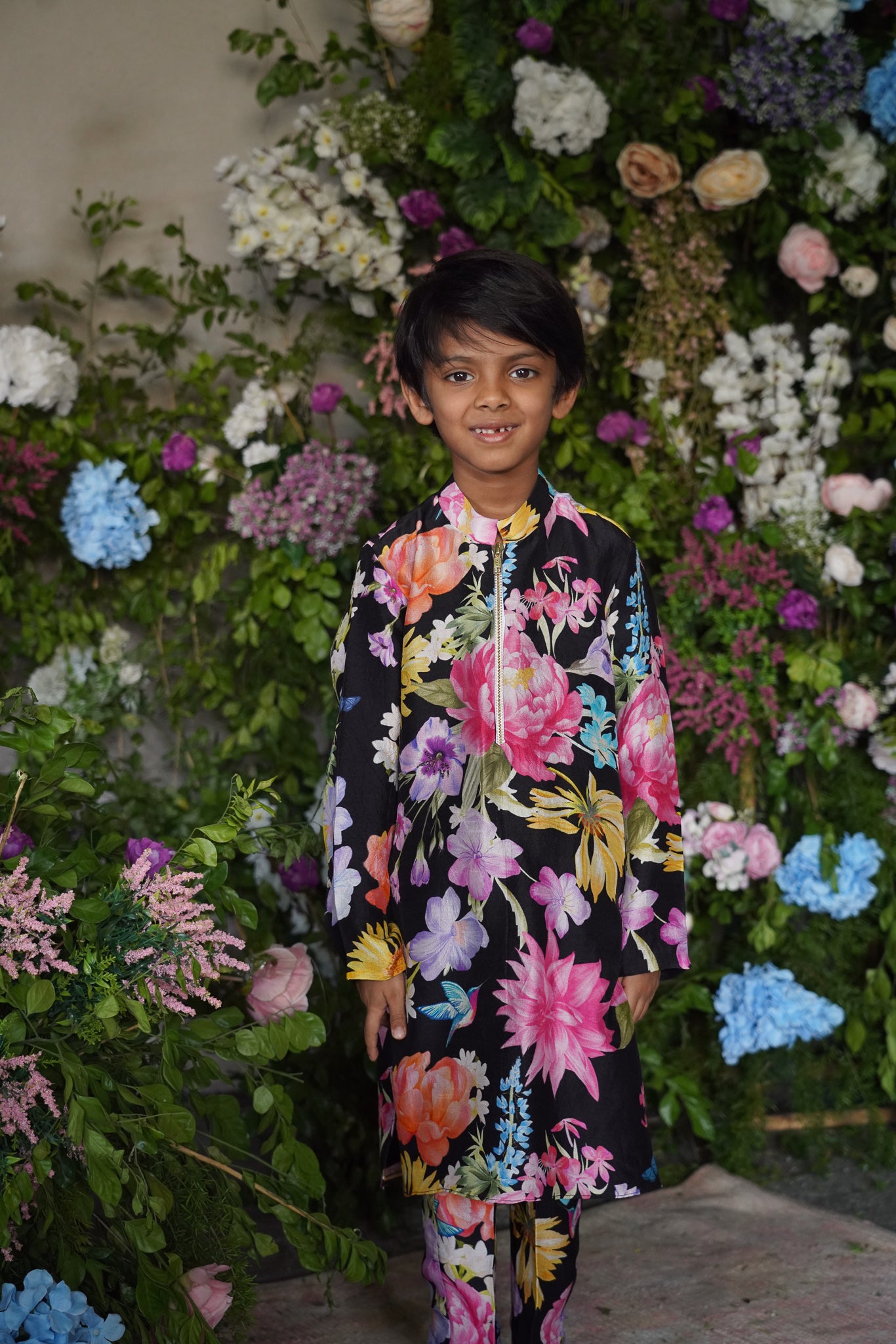 Custom Print Kurta with Metal ZIp Detailing and Printed Pants Set