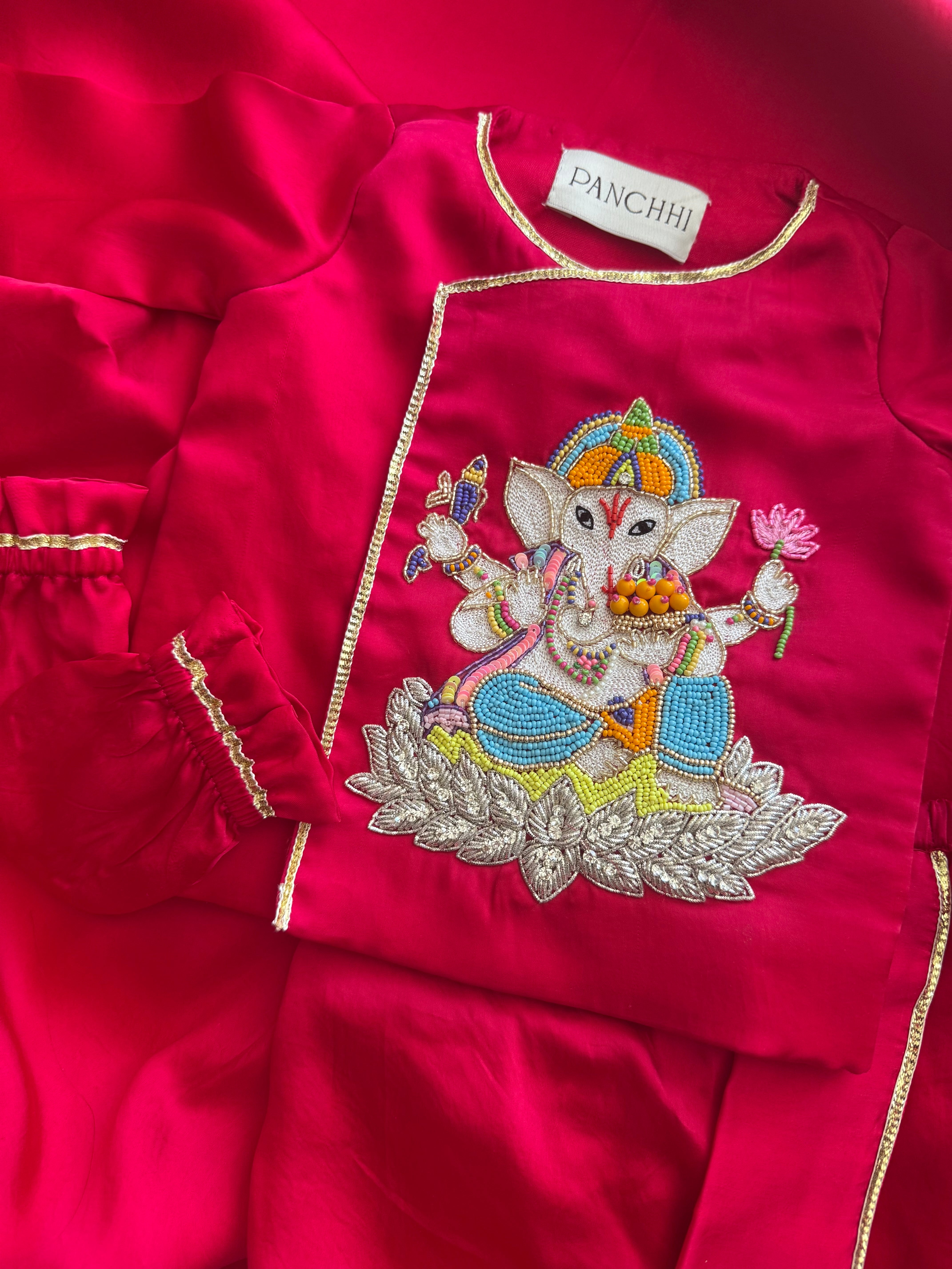Newborn Jaamna Set with ganpati embroidered kunic Set.