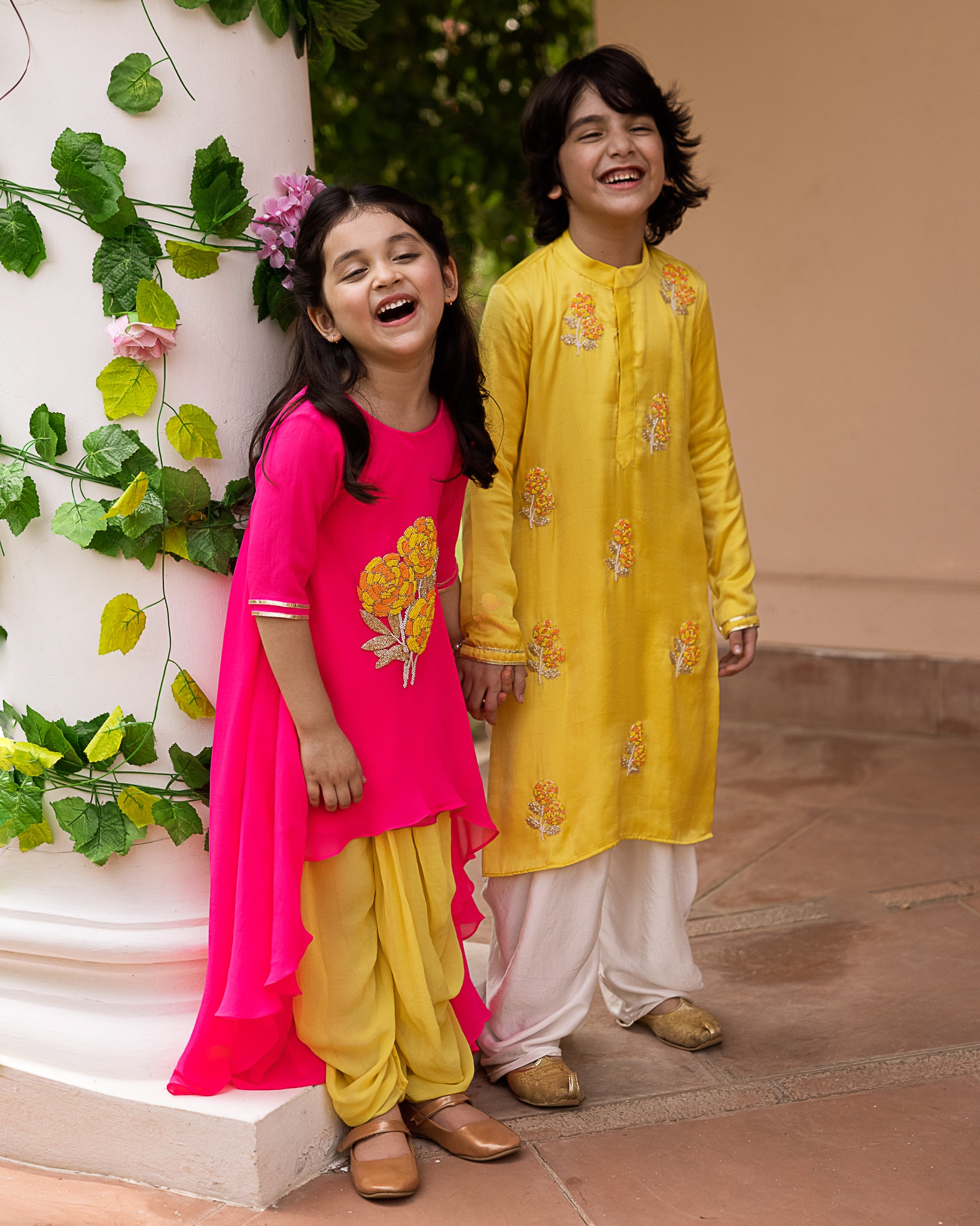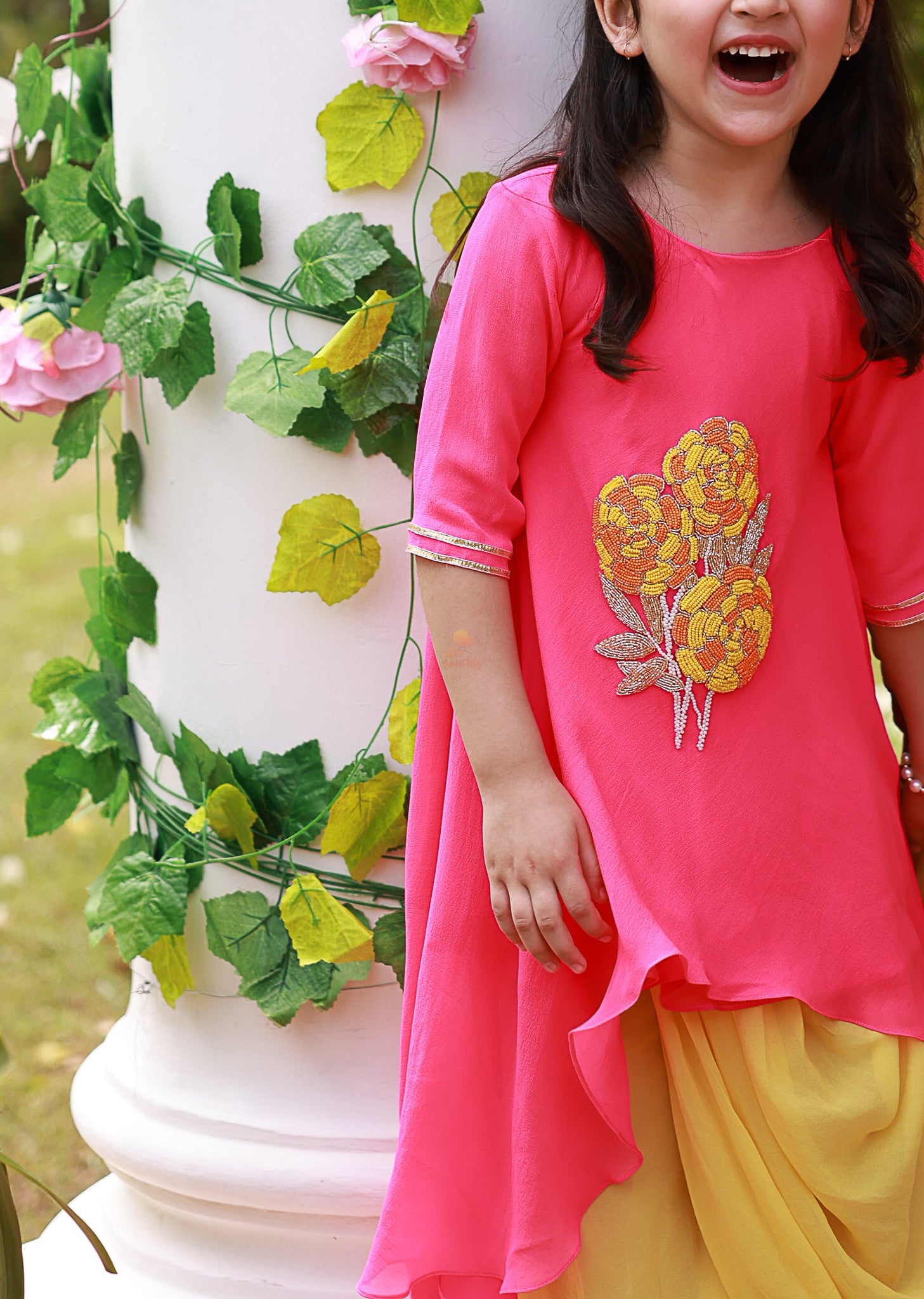High Low Tunic with Hand Embroidered Marigolds and Dhoti pants.