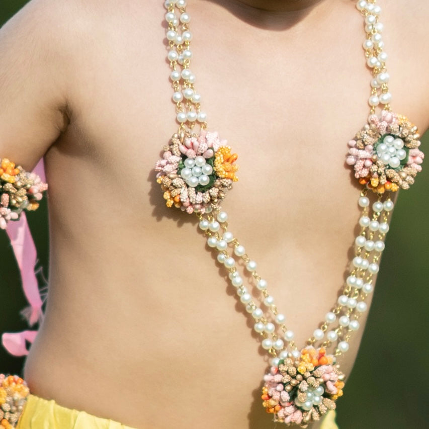 Floral Jewellery (Necklace, Kamar Band, Baju-Band/Bracelet, Earrings and Maangtika for Girls).