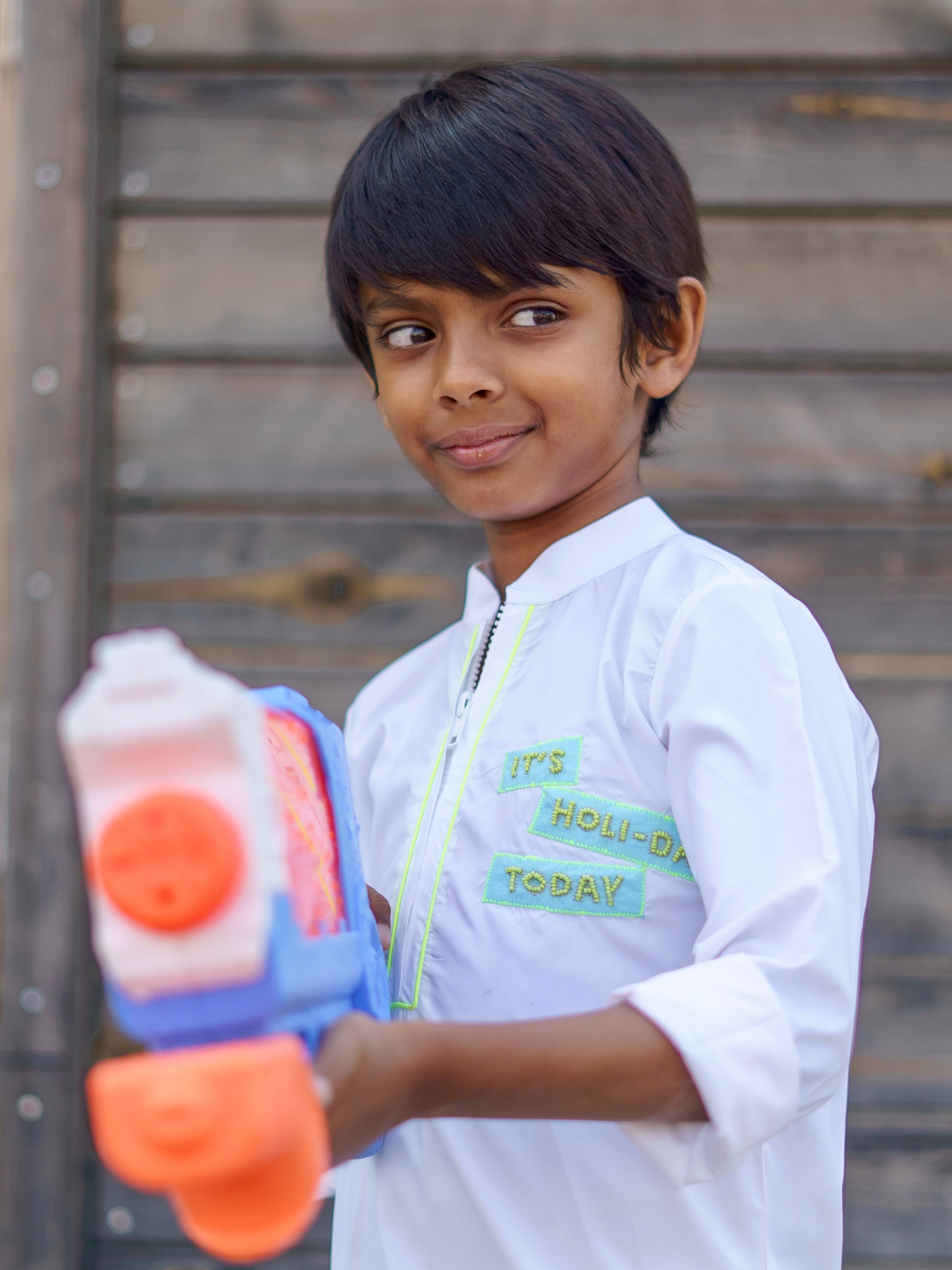 ITS HOLI-DAY-TODAY Embellishment on a water resistant kurta set created with elastic hem detailing for a fun and sporty look