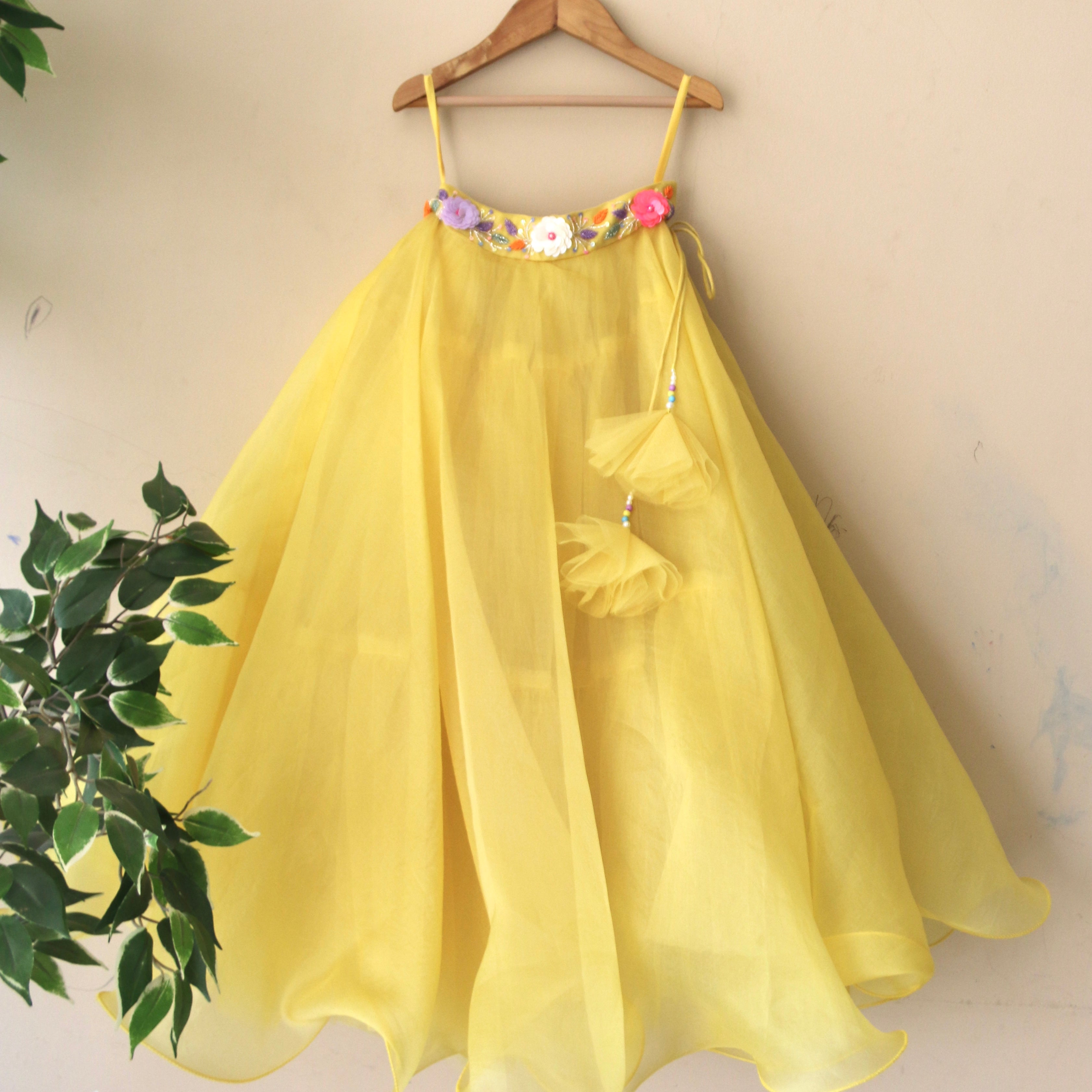 s in 2-Floral Hand Embroidered Blouse with 3d flowers embellished detailing. Embroidered Belt. Tie Back Detailing and Strap Sleeves on the blouse. Flower Tassle Included