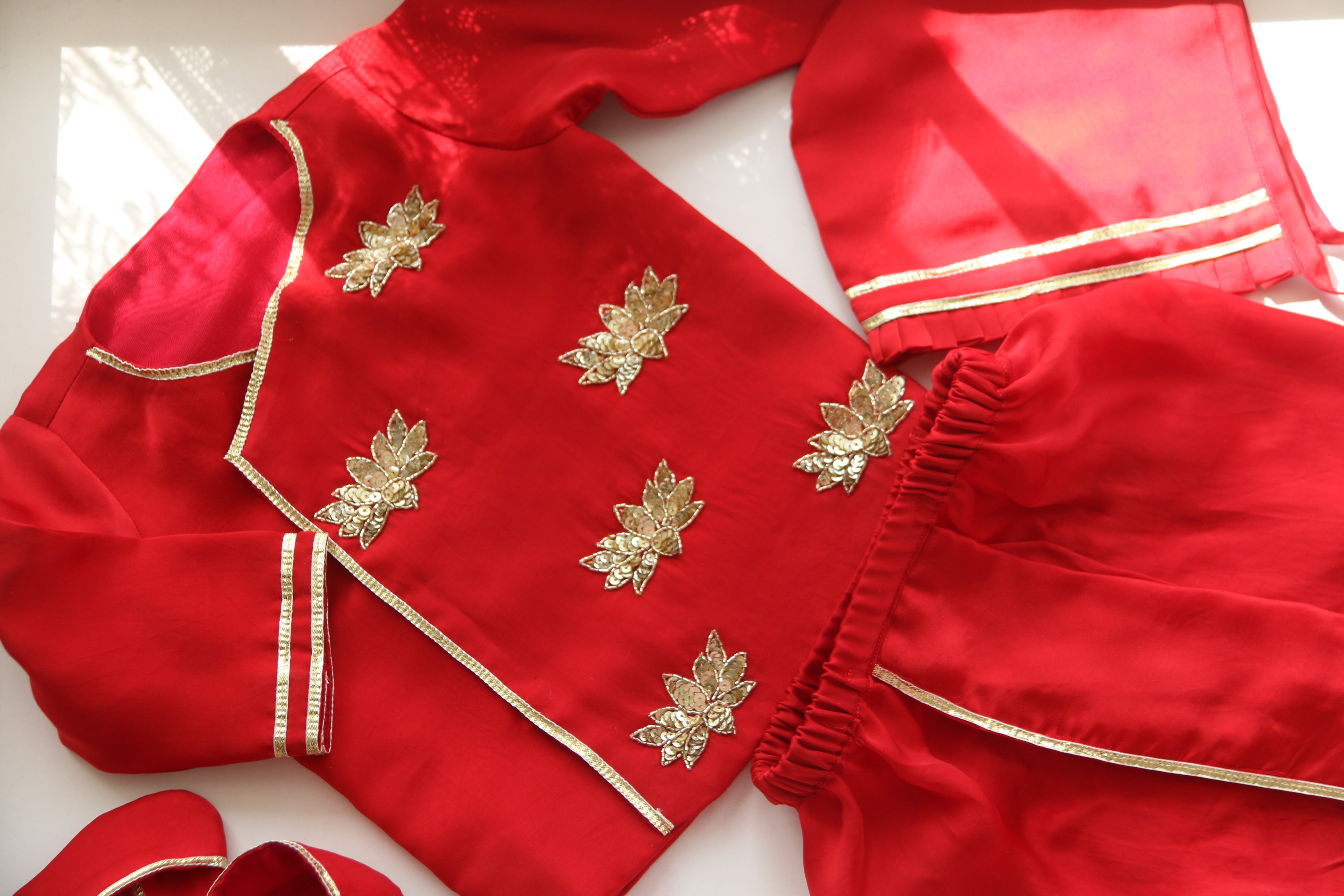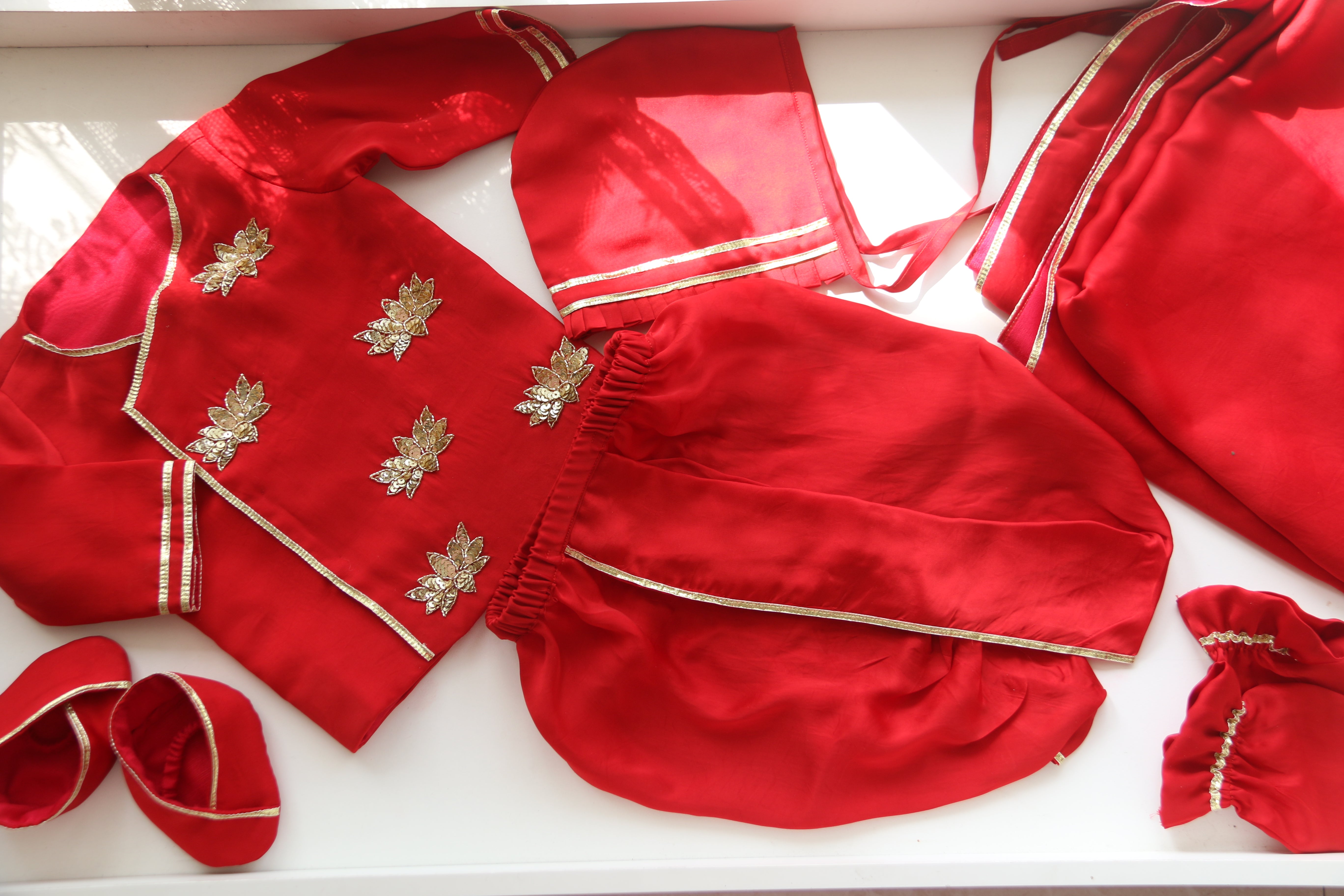Newborn Jaamna Set with Small Lotus Flowers embroidered kurta Set.
