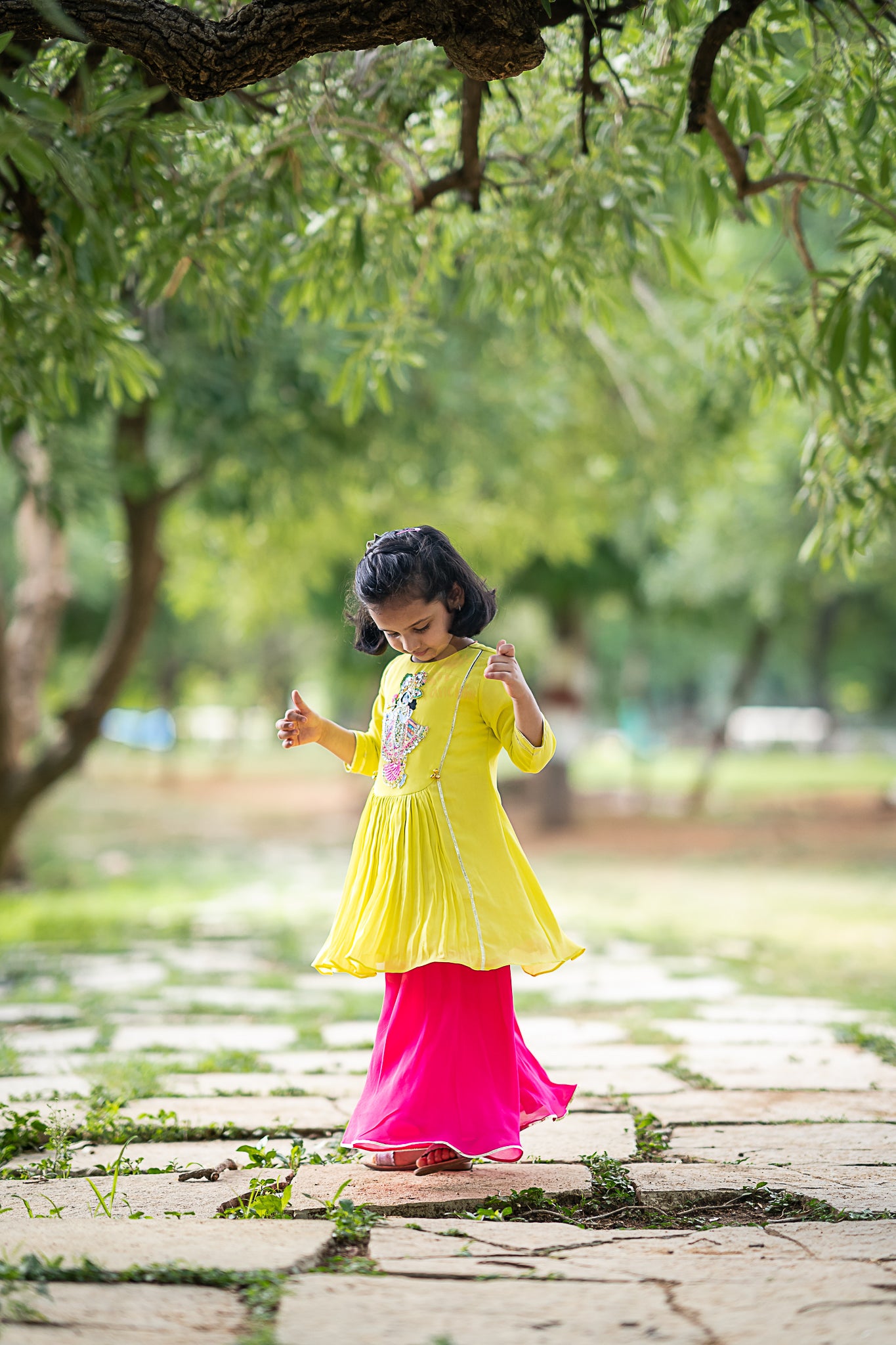 Krishna Embroidered Kurta with Pleats Detailing in the center and Palazzo