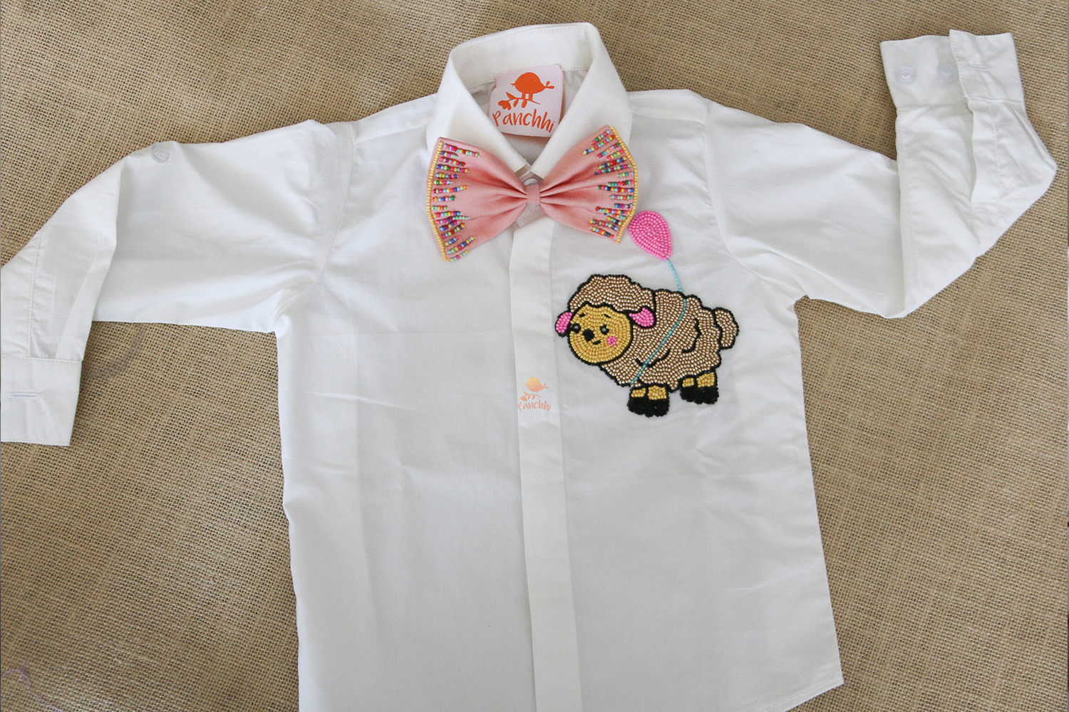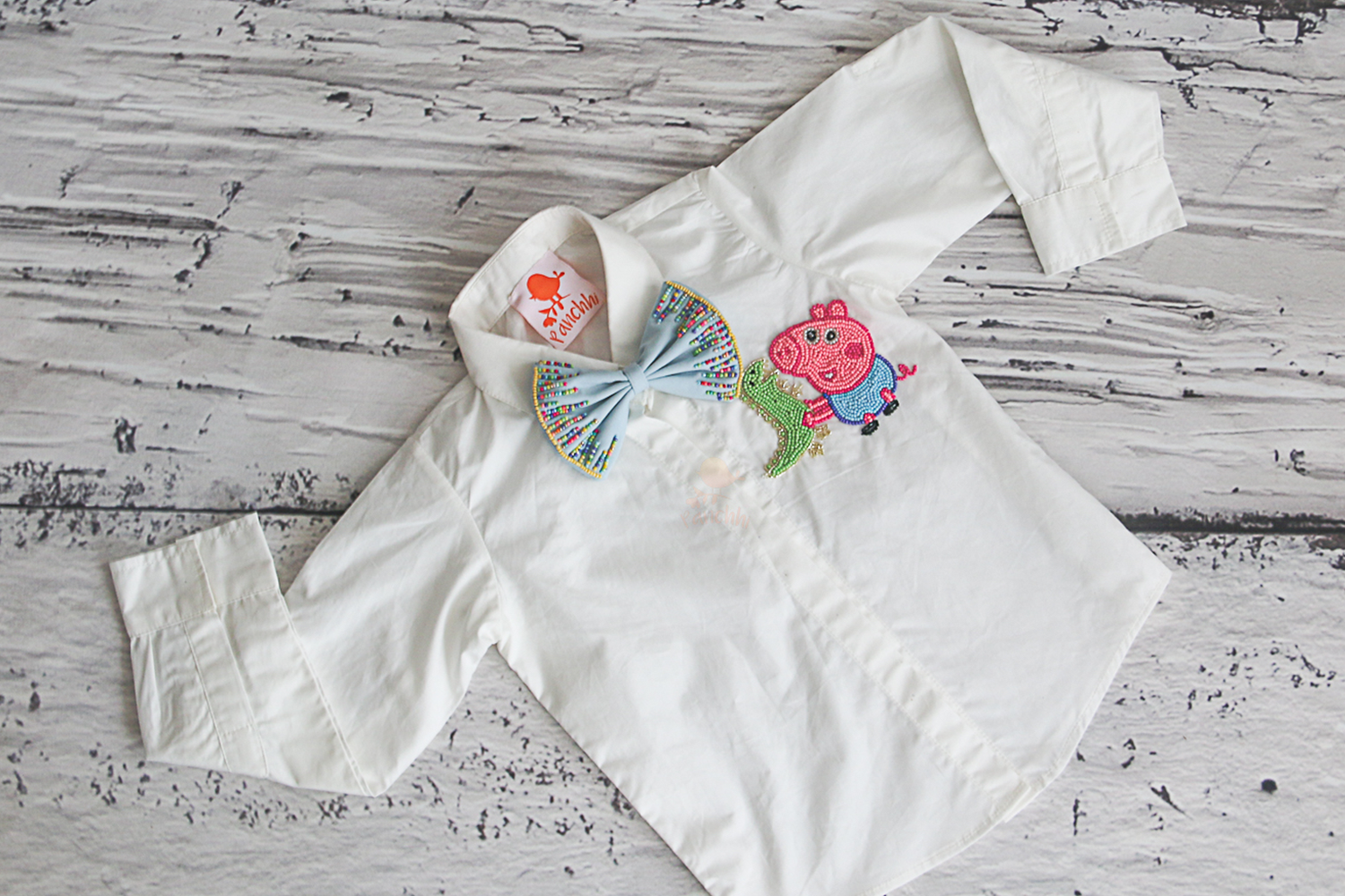 Motif Embroidered Shirt with Bow tie and Name on back.