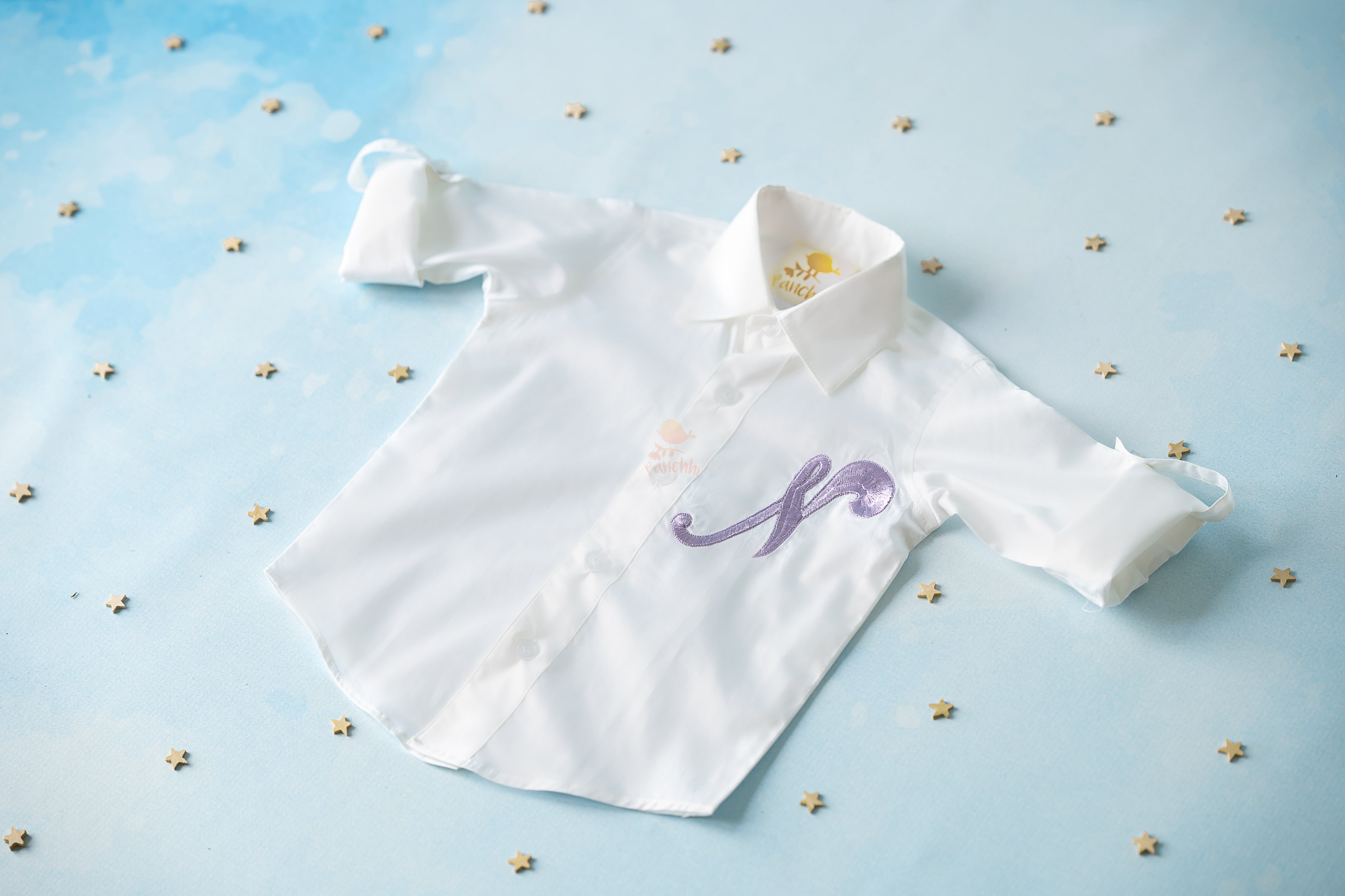 Initial Embroidered Unisex Shirt in Pure Egyptian Giza Cotton with Foldable Sleeves.