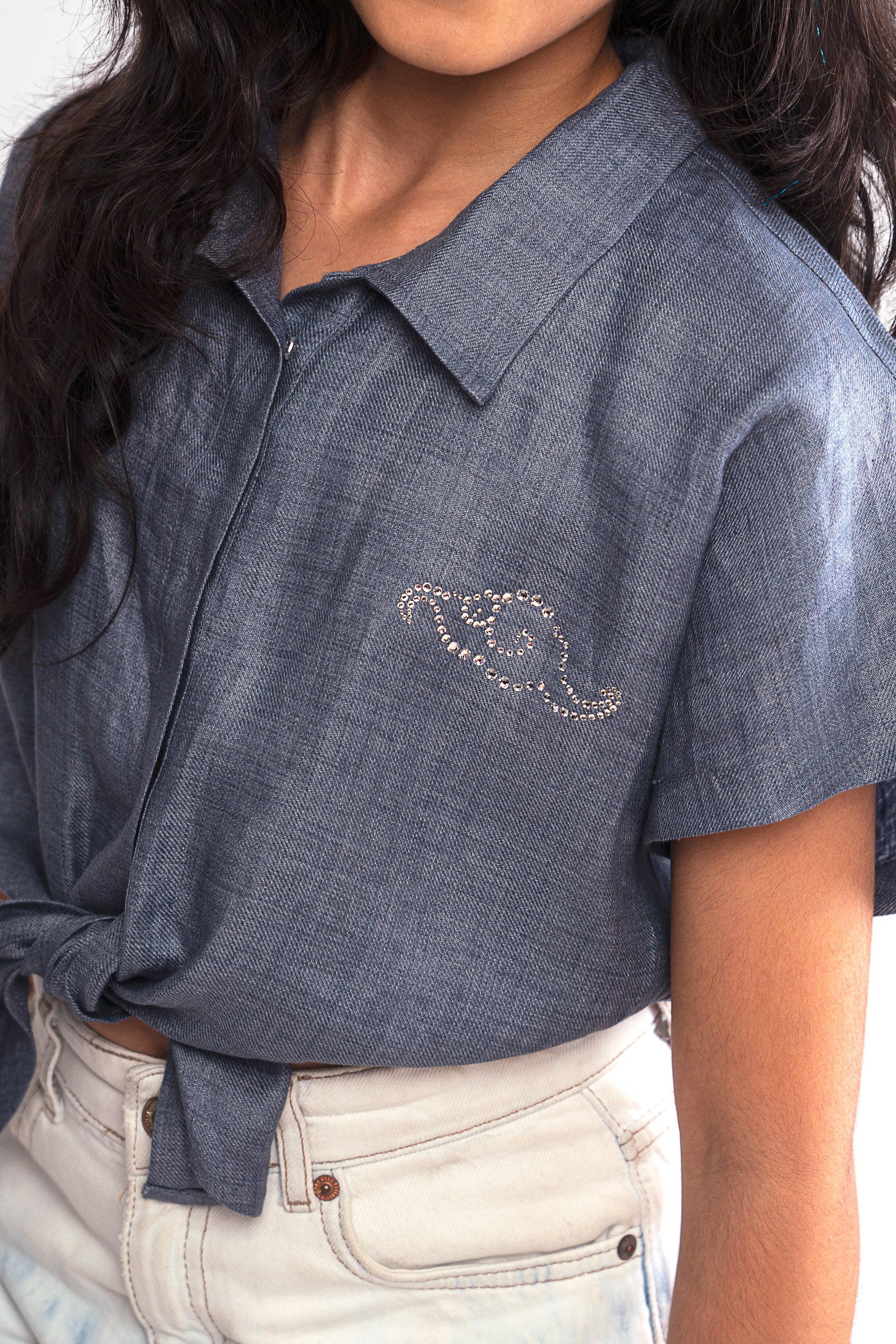 This fine tie knot detailed top with Swarovski Cloud Embellishment allows girls to embrace their whimsical side and showcase their unique sense of style. The cloud design symbolises dreams, aspirations, and the freedom to let one's imagination soar fostering a sense of wonder and creativity.