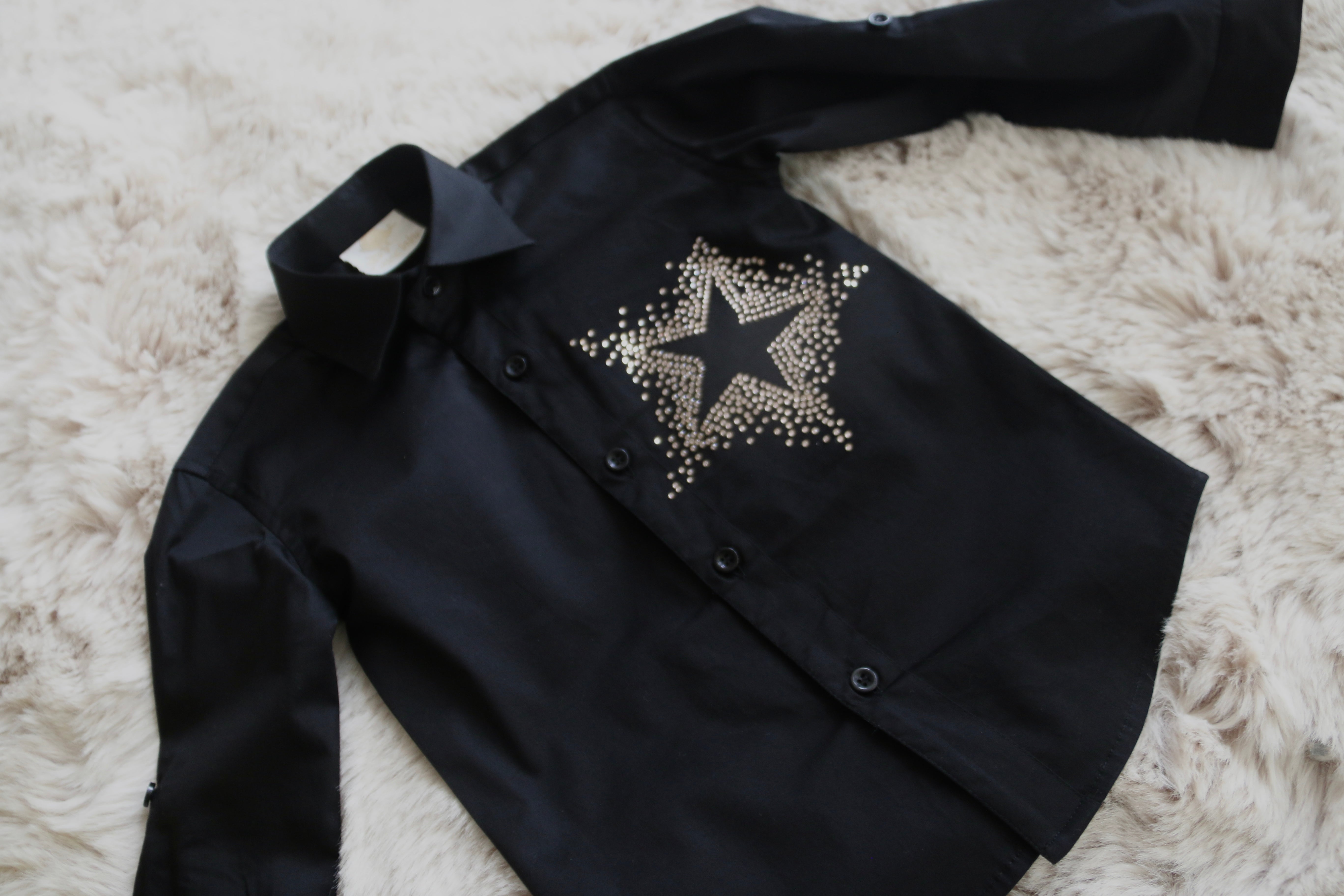 Designed to celebrate children and make them shine like the stars . This unique shirt features a stunning Swarovski embellishment, creating a mesmerising effect that adds a touch of glamour and sophistication to the garment.