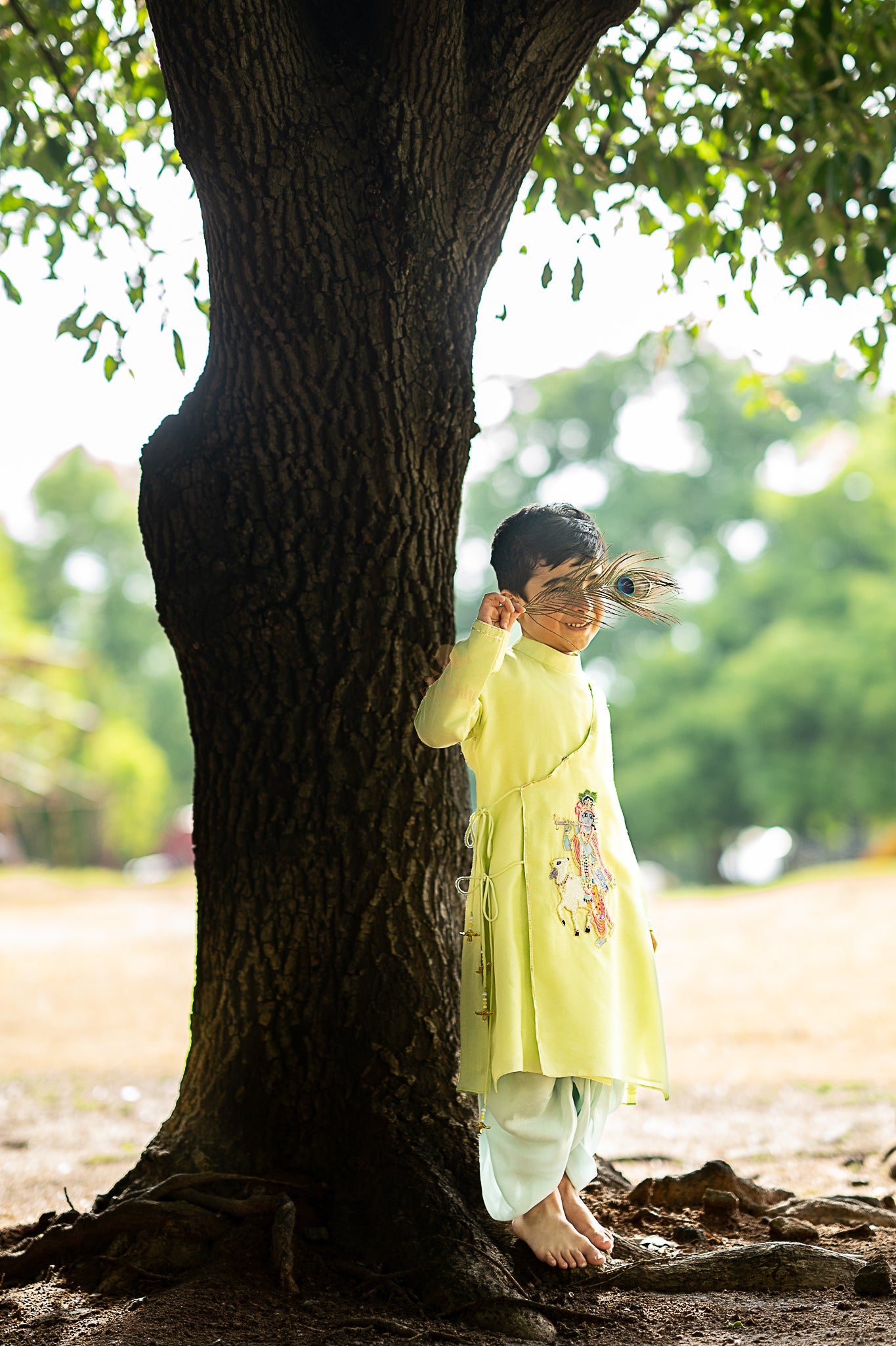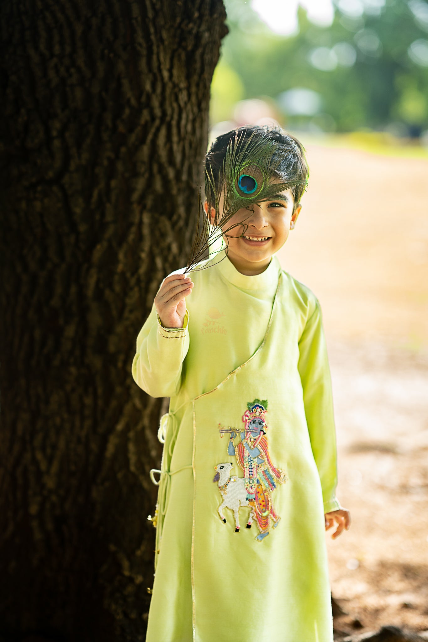 Hand Embroidered face of Shreenathji in an Angrakha style kurta with Side Tie Up detailing and Dhoti.