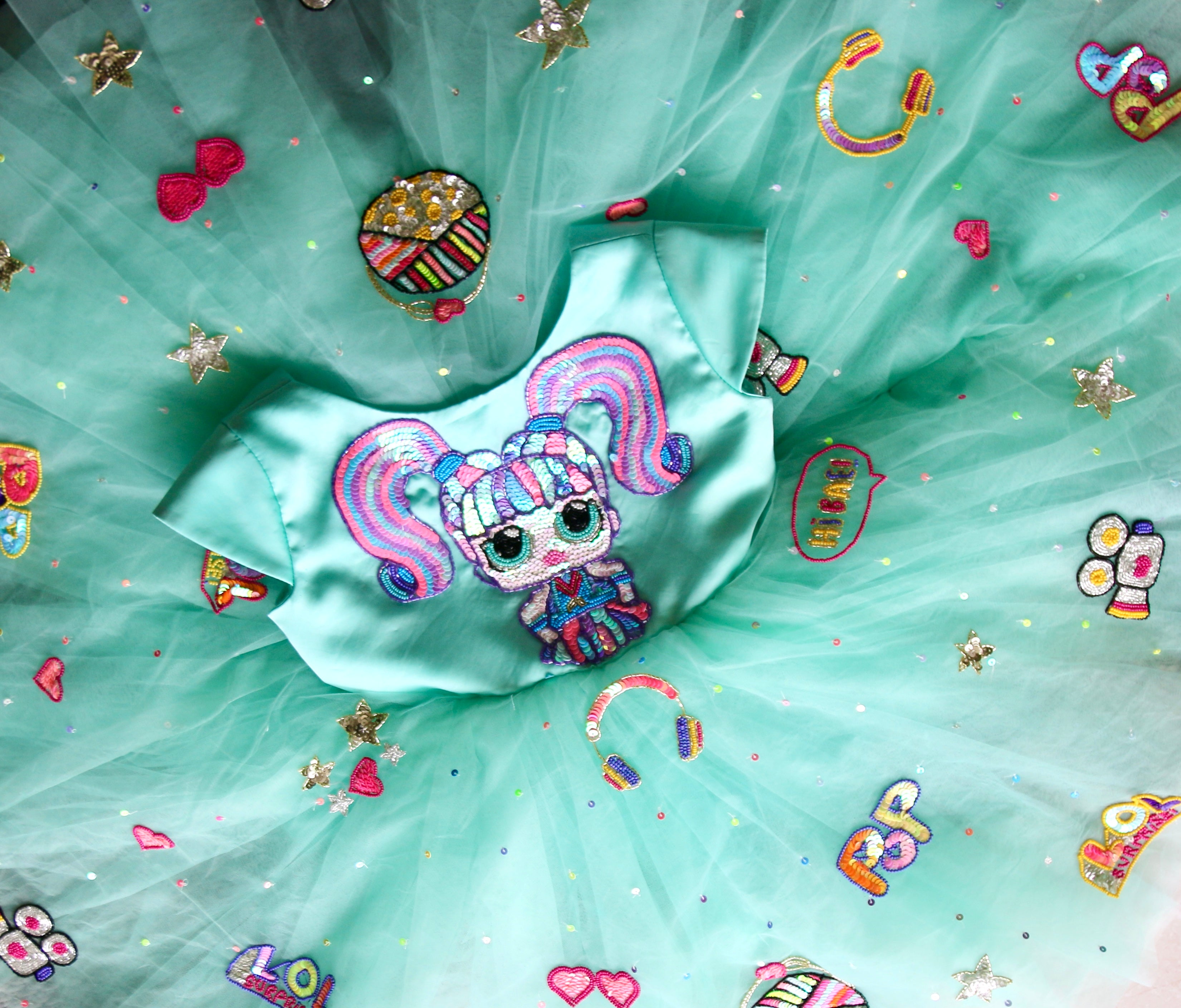 Theme Embroidered Short Dress.Hand Embroidered Motifs Inspired by popular children's characters, books and Interests