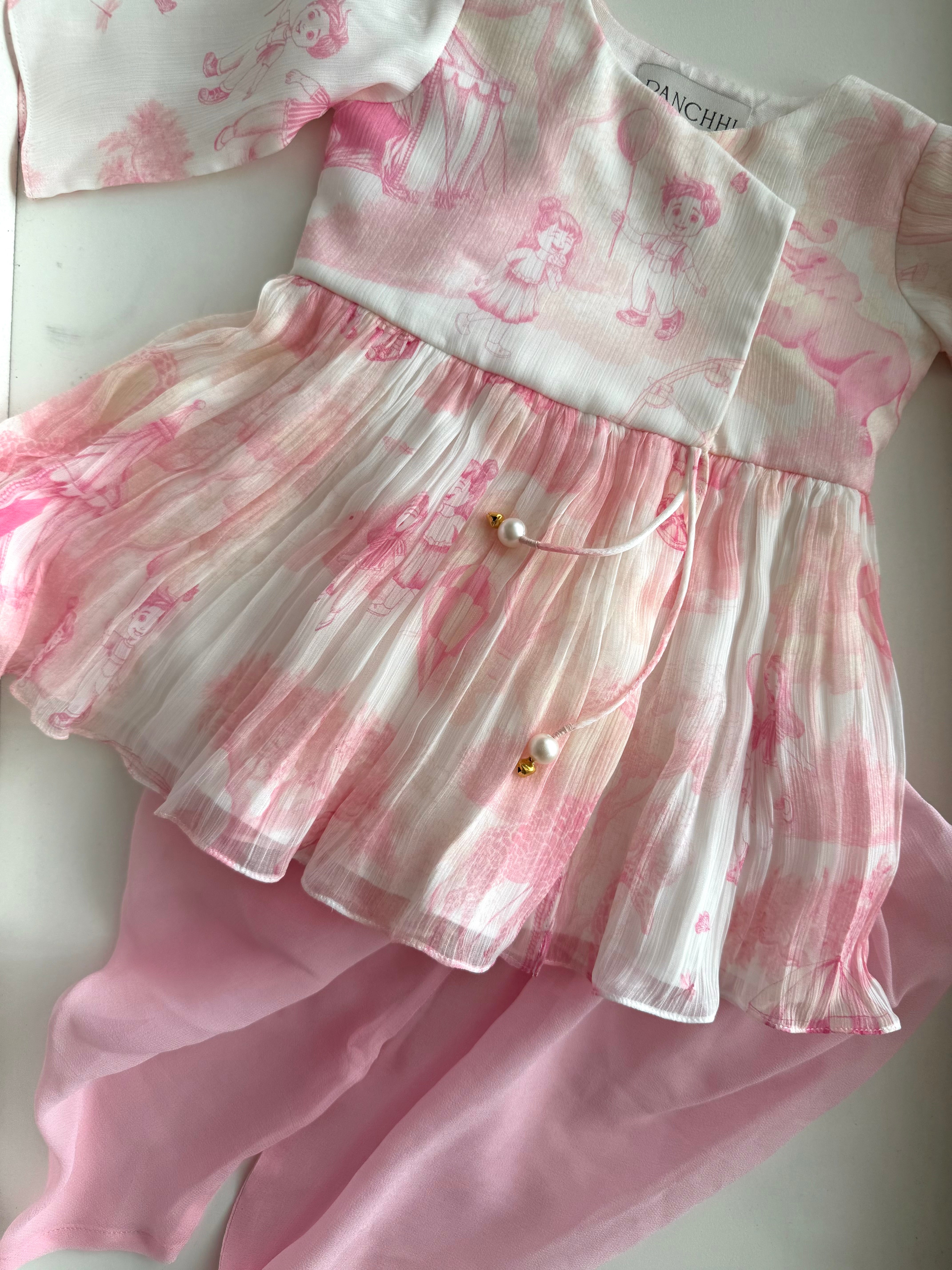 A tunic set in Toile De Juoy style Print in a children's carnival theme