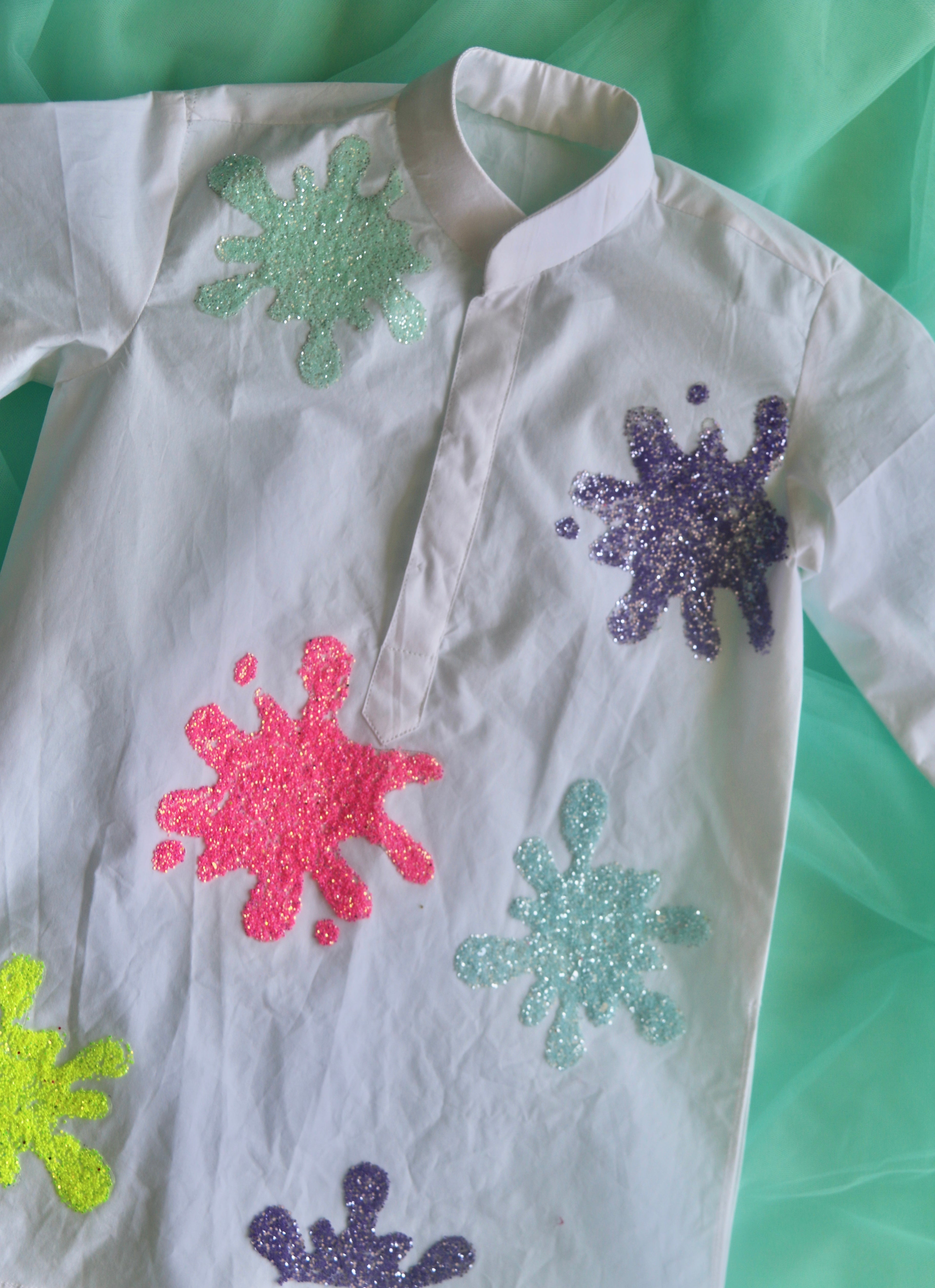 (This piece is created for Holi and not meant for long term use, as Glitter is stuck on the fabric and will start to wear out with excess use. Dry Clean and use delicately if intended to be worn several times)