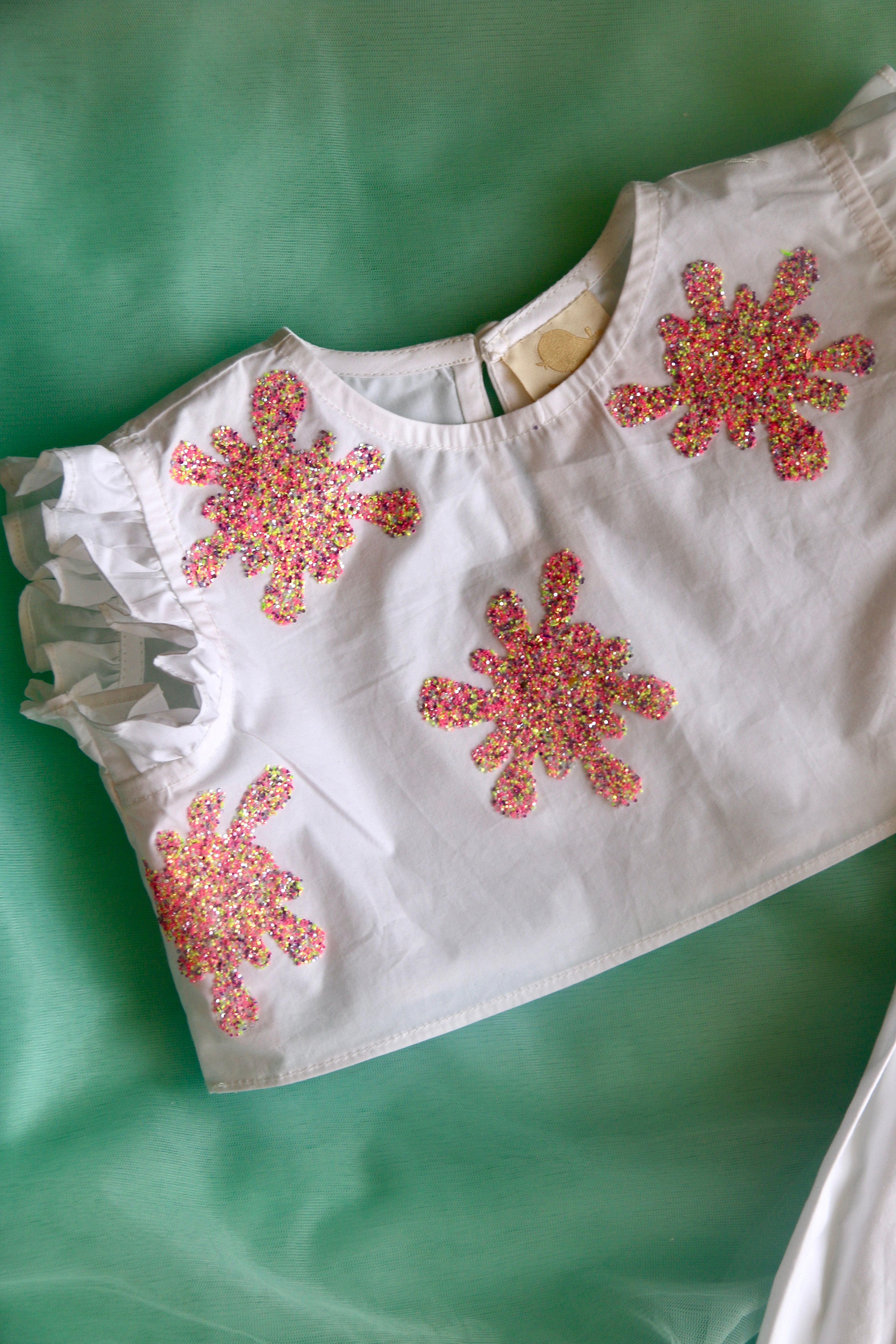 (This piece is created for Holi and not meant for long term use, as Glitter is stuck on the fabric and will start to wear out with excess use. Dry Clean and use delicately if intended to be worn several times)