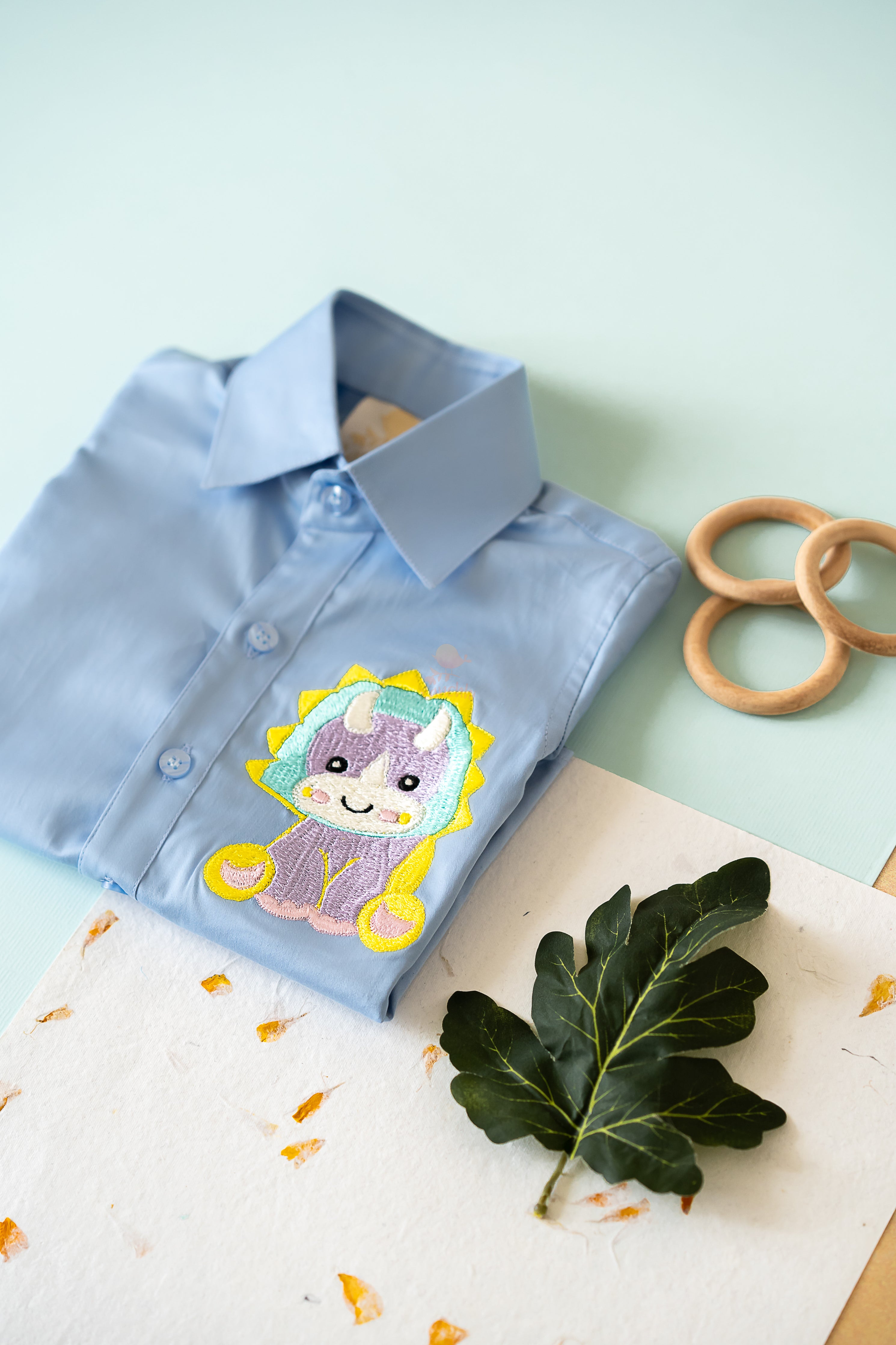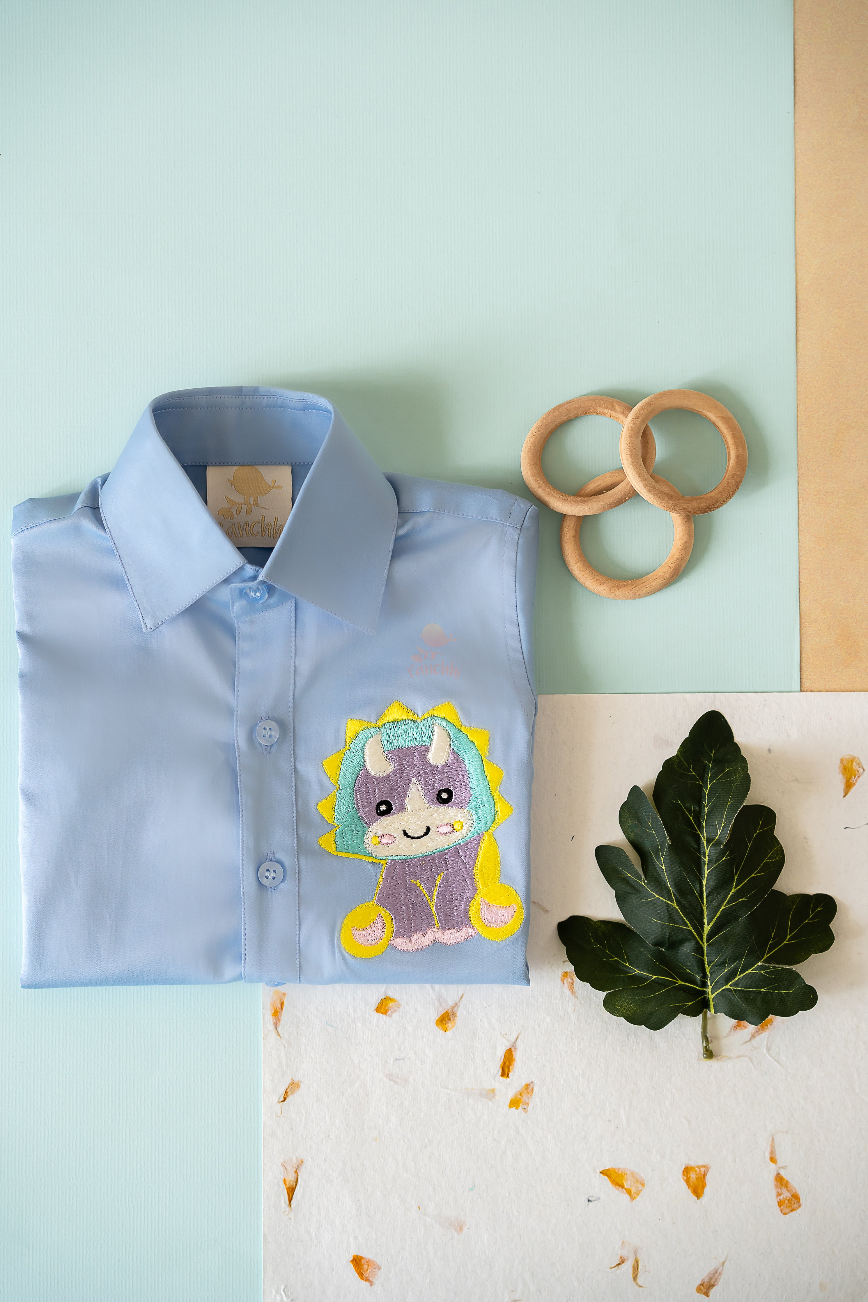 Embroidered Unisex Shirt in Pure Egyptian Giza Cotton with Foldable Sleeves. Romper Style can be made for upto 6 months on request.