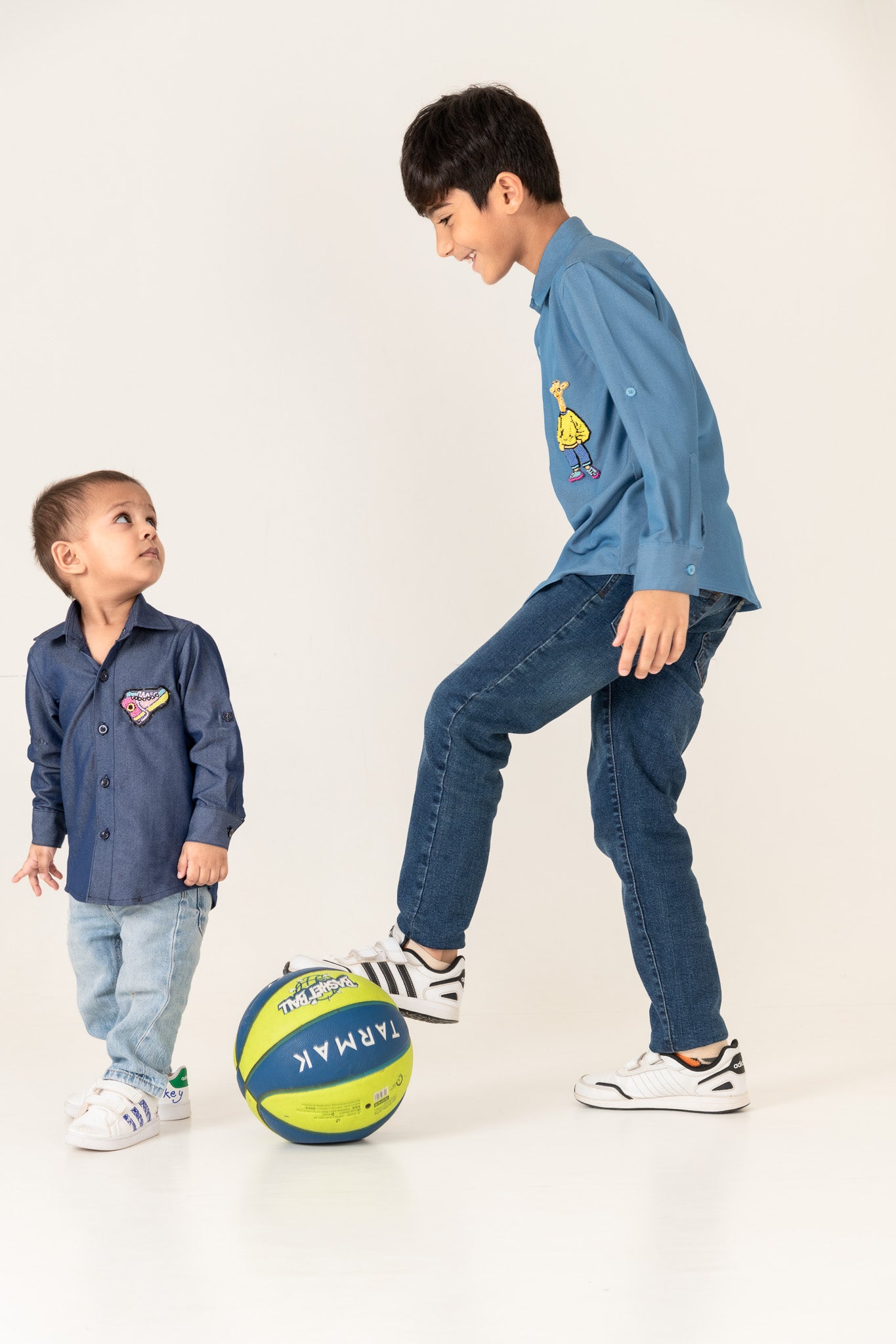 Hand Embroidered Sneaker Motif on a shirt. If you would like to customse the motif or choose from any of the motifs of this collection, please get in touch with us..