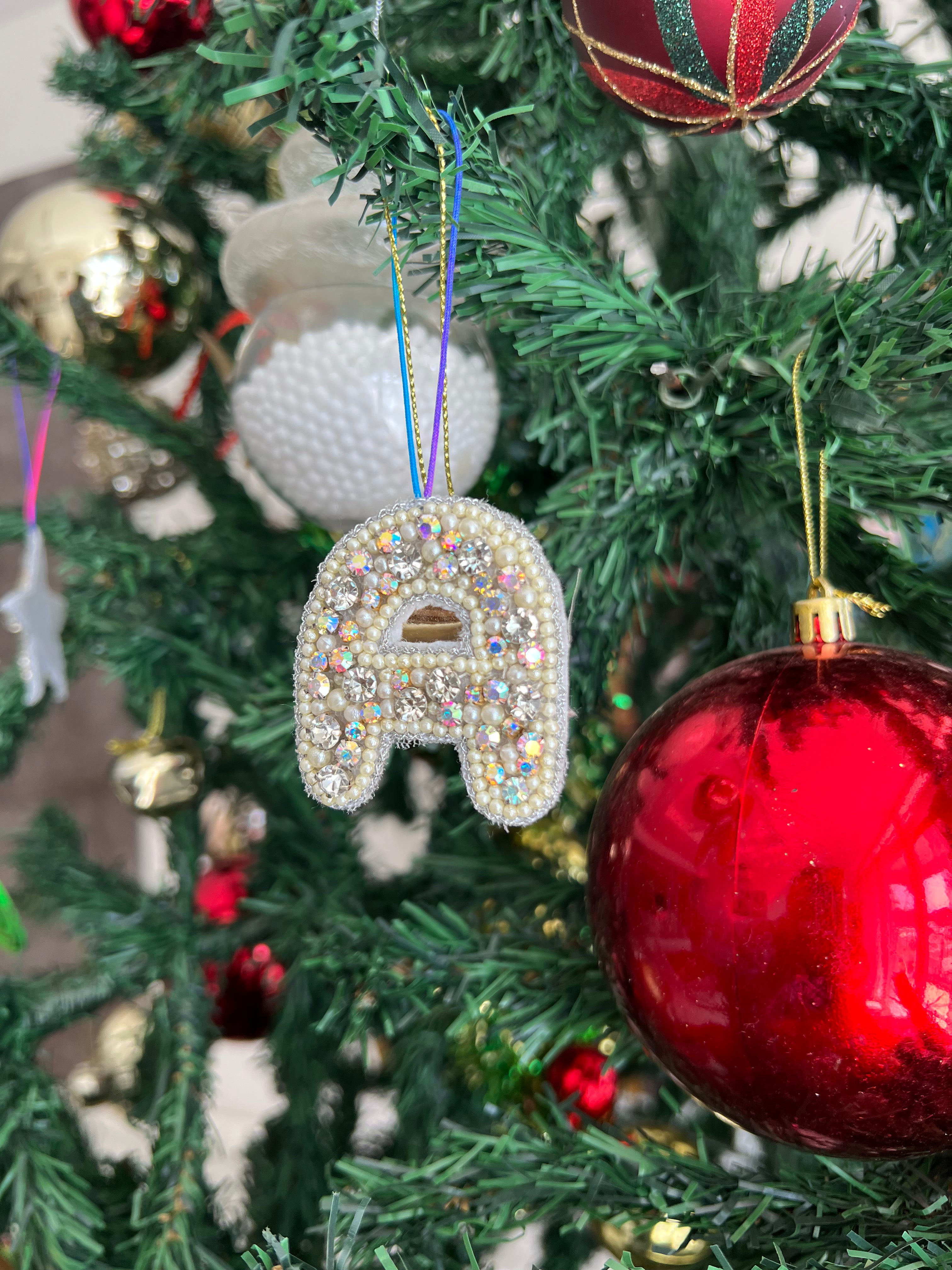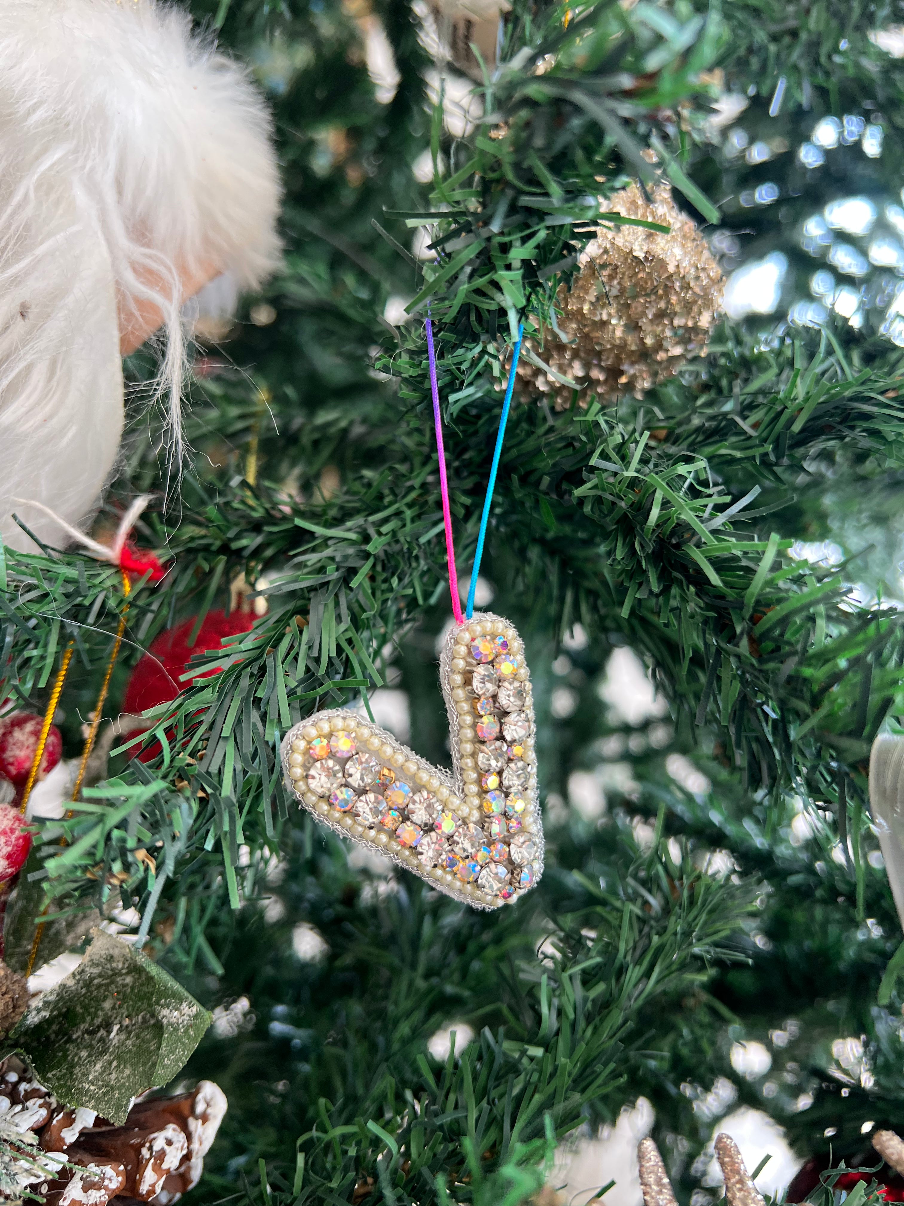 Set of 4, Hand Embroidered Pearls and Crystals Embellished Christmas Tree Bauble. Use it as a Brooch or an accesosory later.