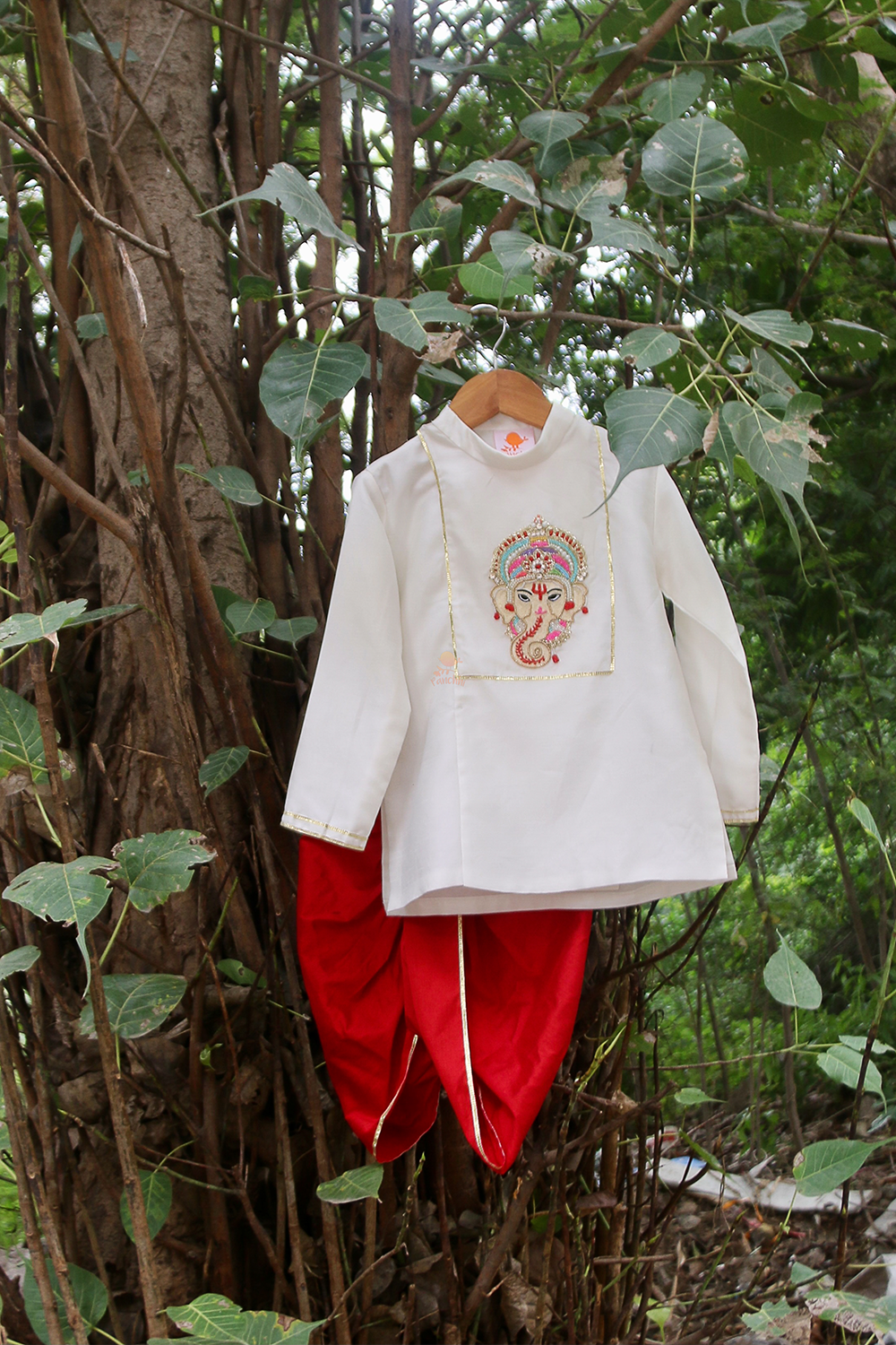 Ganpati Face Embroidered Kurta Set with Dhoti Pants
