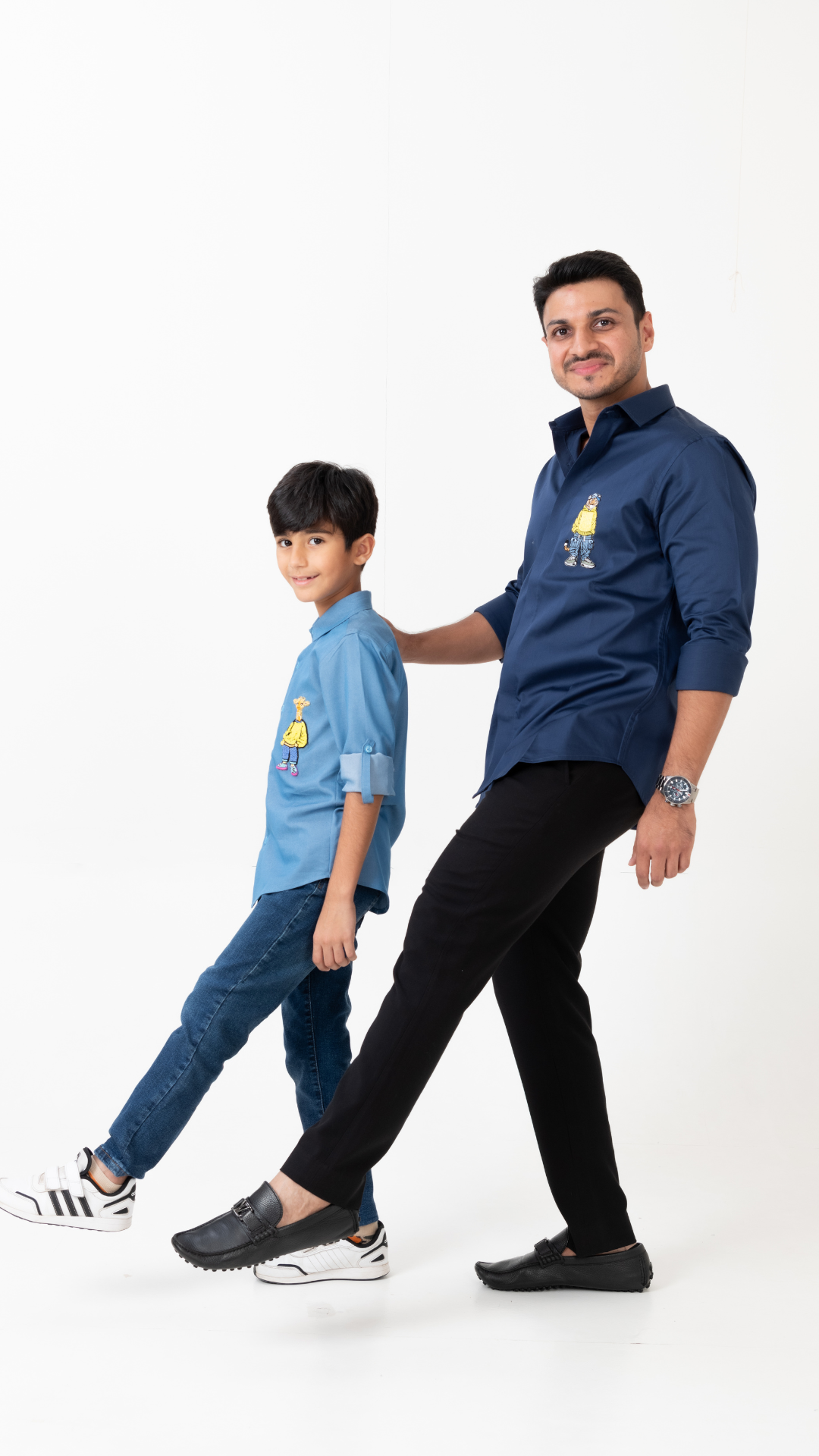 Shirt crafted in the finest Giza Cotton with an embroidered motif of a Tiger dressed as a Man. Foldable Sleeves Detailing.