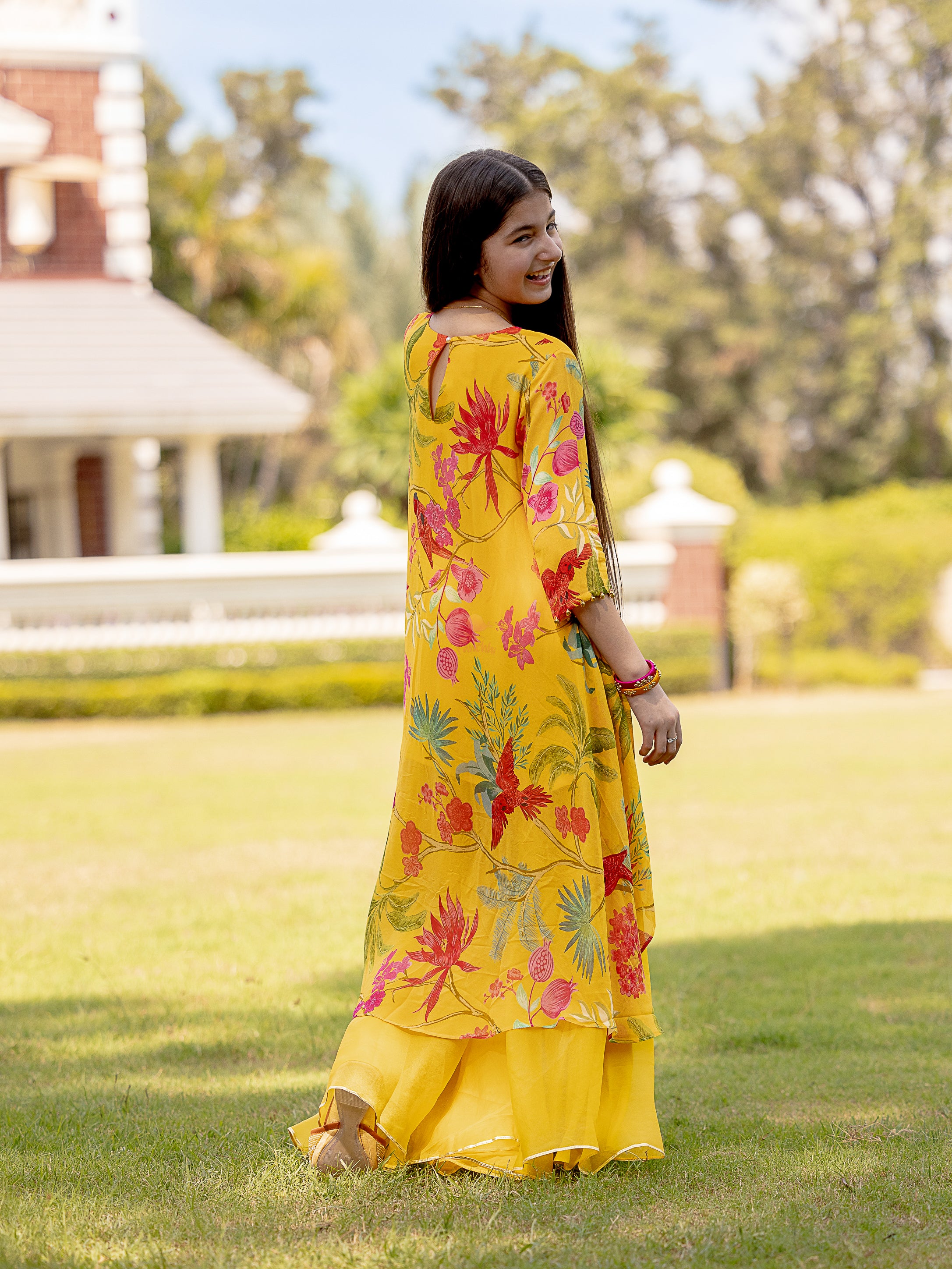 Color: Top: Custom Print, Pants: Saffron Yellow