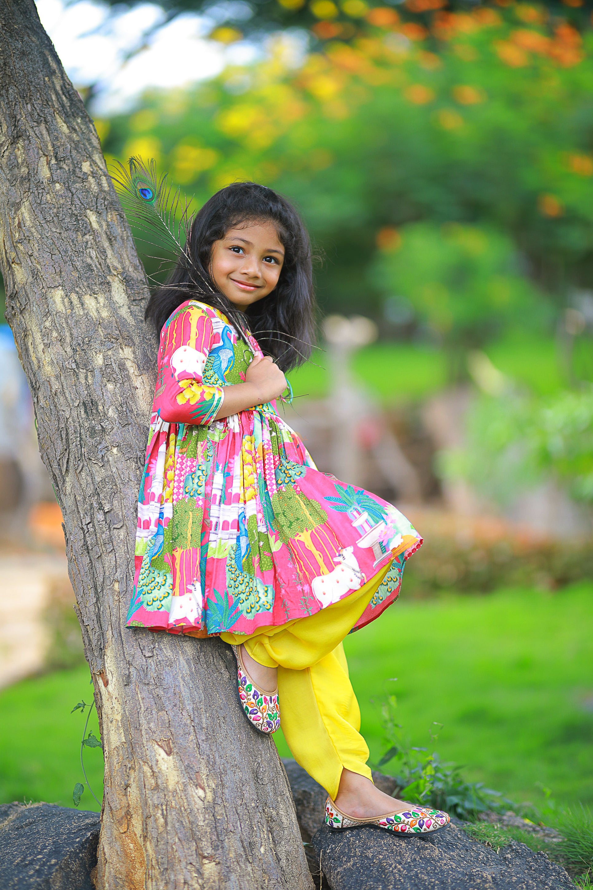 Angrakha in Vrindavan and Life of Krishna Inspired Custom designed Print for Janmashtami. Tassel detailing blouse.